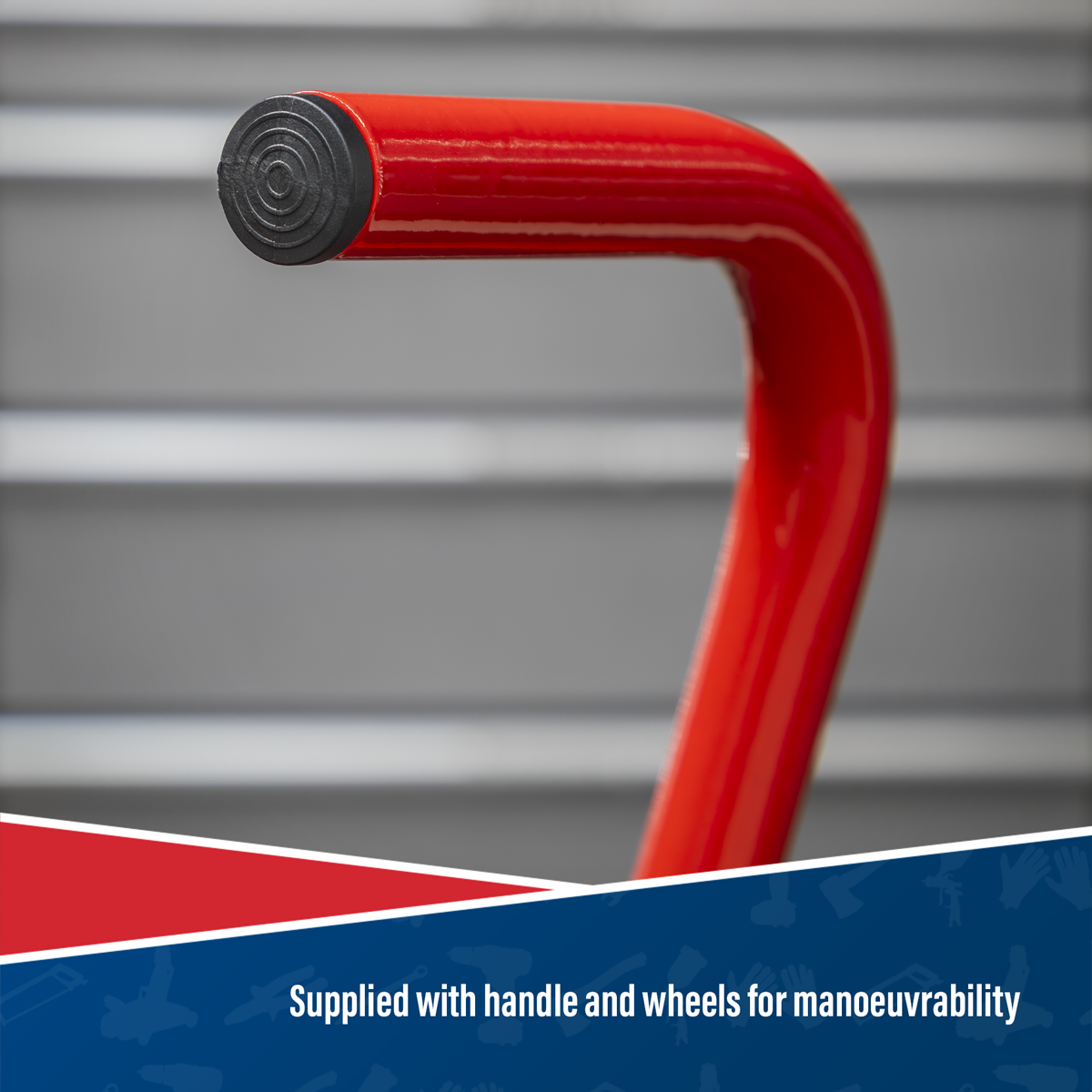• Supplied with handle and wheels for manoeuvrability.