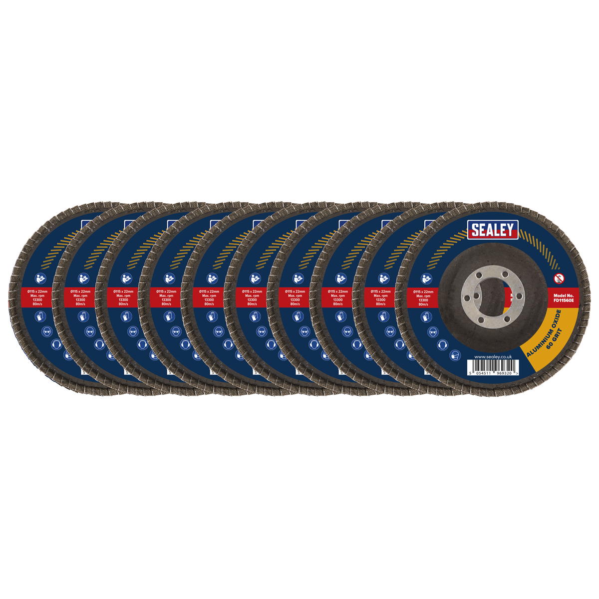 115mm Aluminium Oxide Flap Discs 60Grit 22mm Bore - Pack of 10