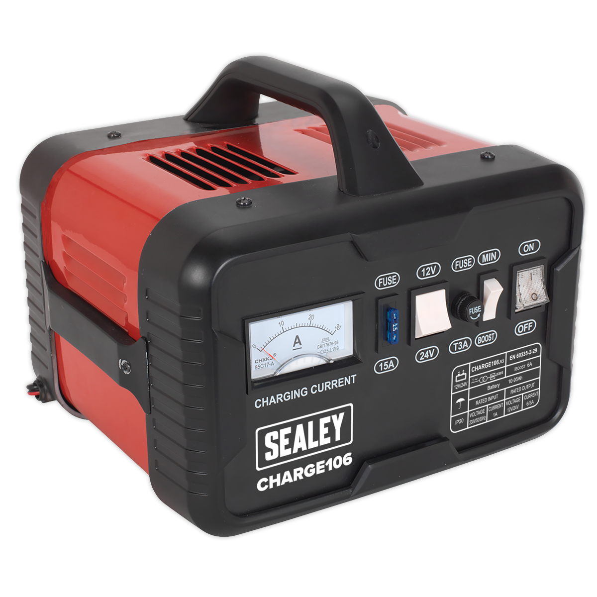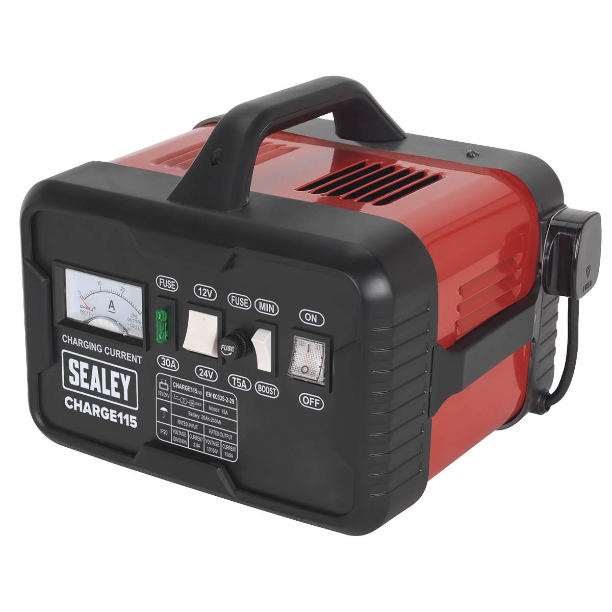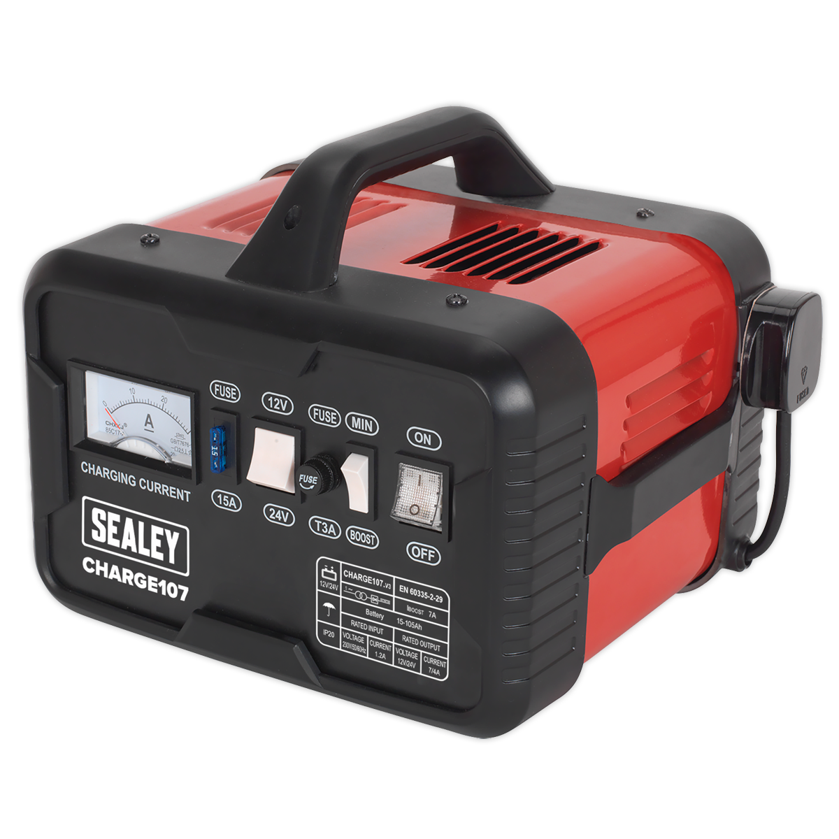 - A large ammeter displays rate of charge and a dash-mounted fuse provides polarity protection in the event of the clips being connected incorrectly.
