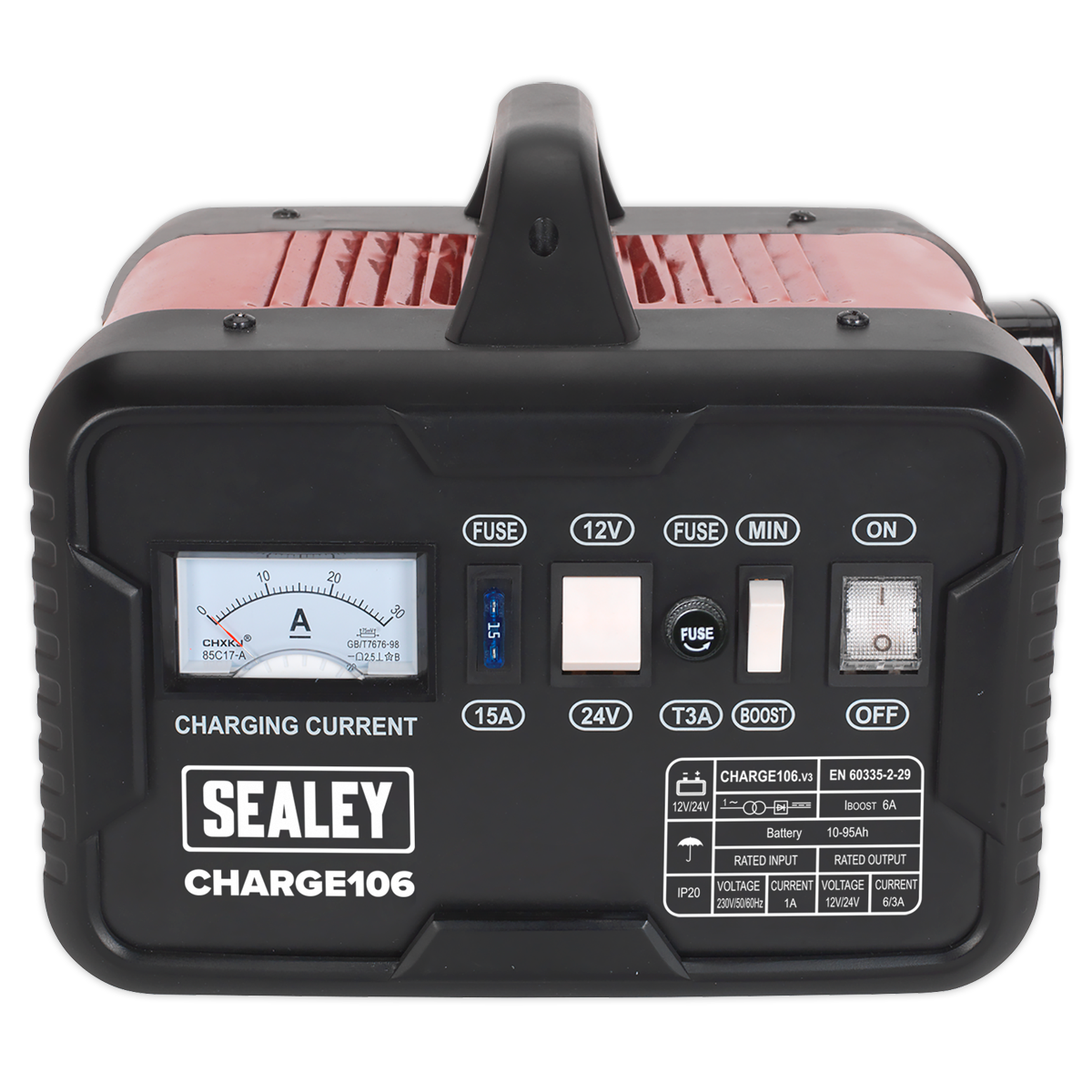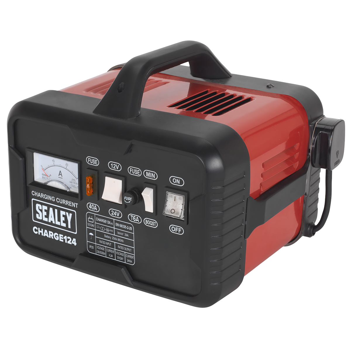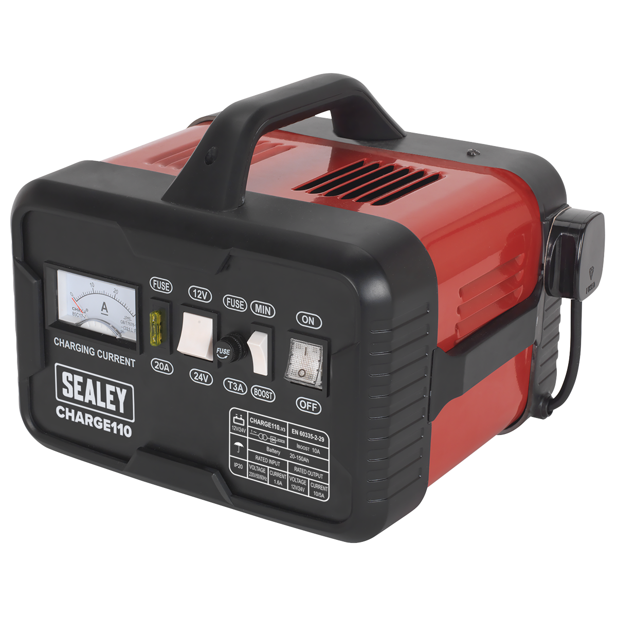 - A large ammeter displays rate of charge and a dash-mounted fuse provides polarity protection in the event of the clips being connected incorrectly.