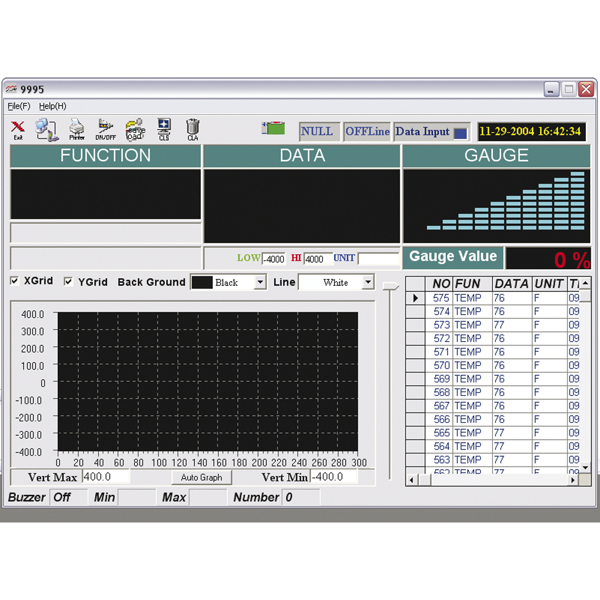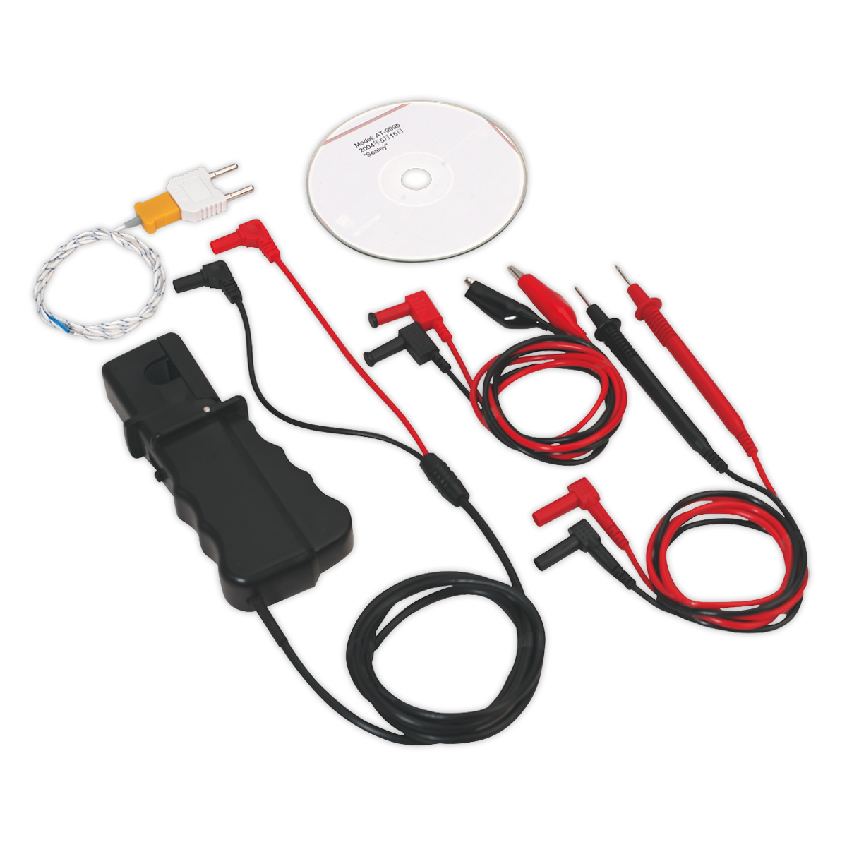 • Supplied with inductive coupler (IC) with adjustable sensitivity, for fast reading of engine rpm, test leads (probe and clip) and thermocouple plus USB interface cable and Windows ME/XP/Vista software for downloading data to PC.