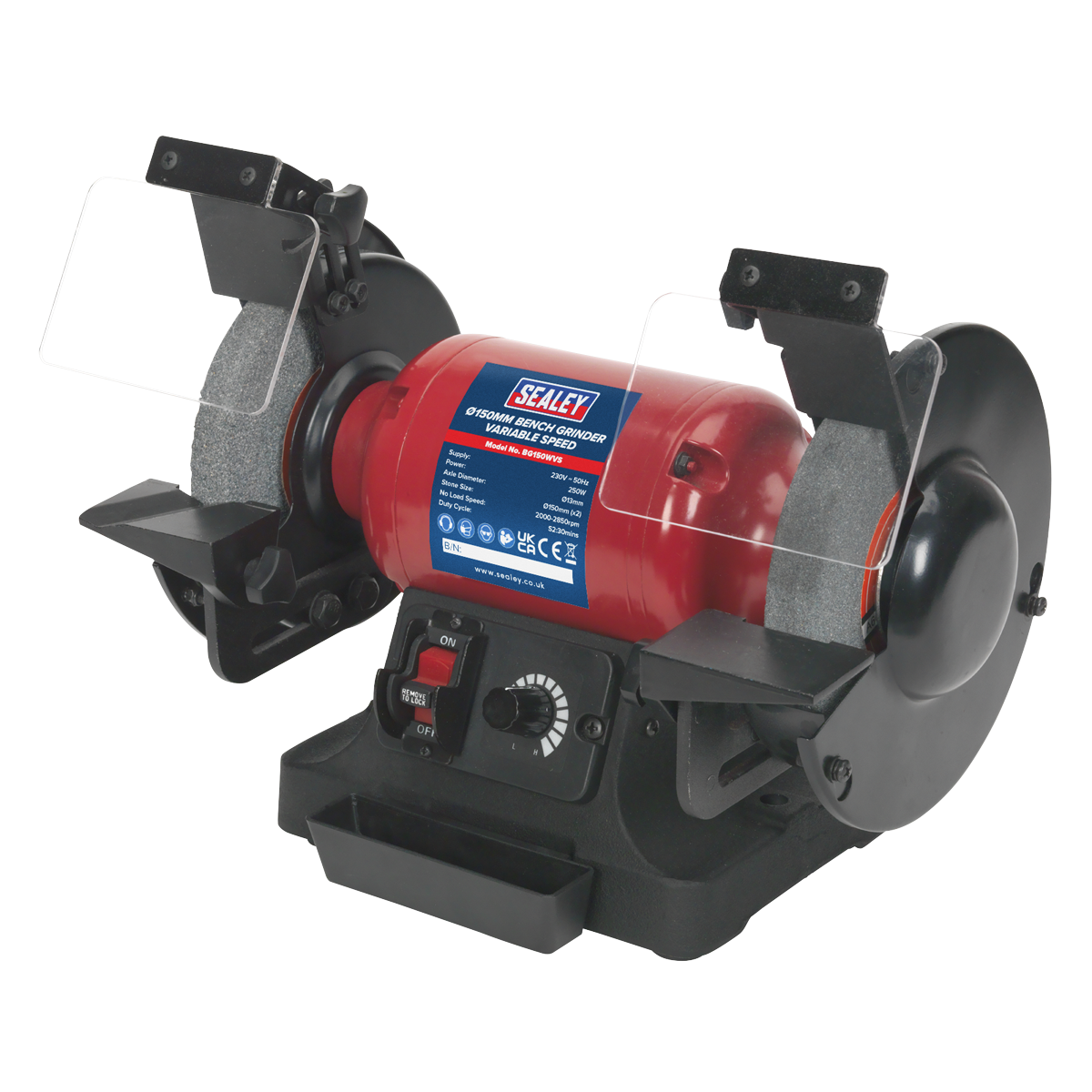 • Substantial tool rests, one with angled cut-out assisting effective tool sharpening.