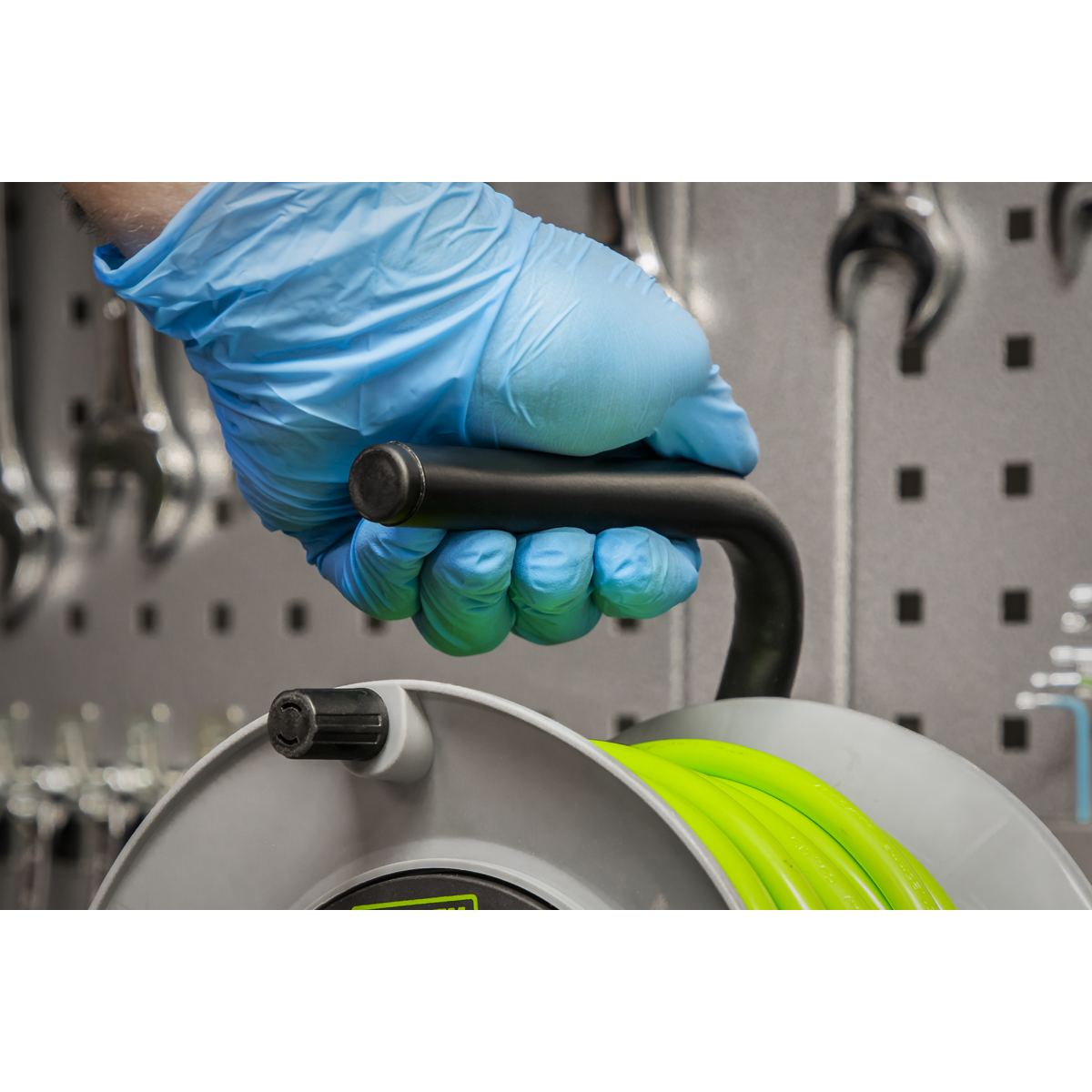 15m Cable Reel with Thermal Trip 4 x 230V - Hi-Vis Green