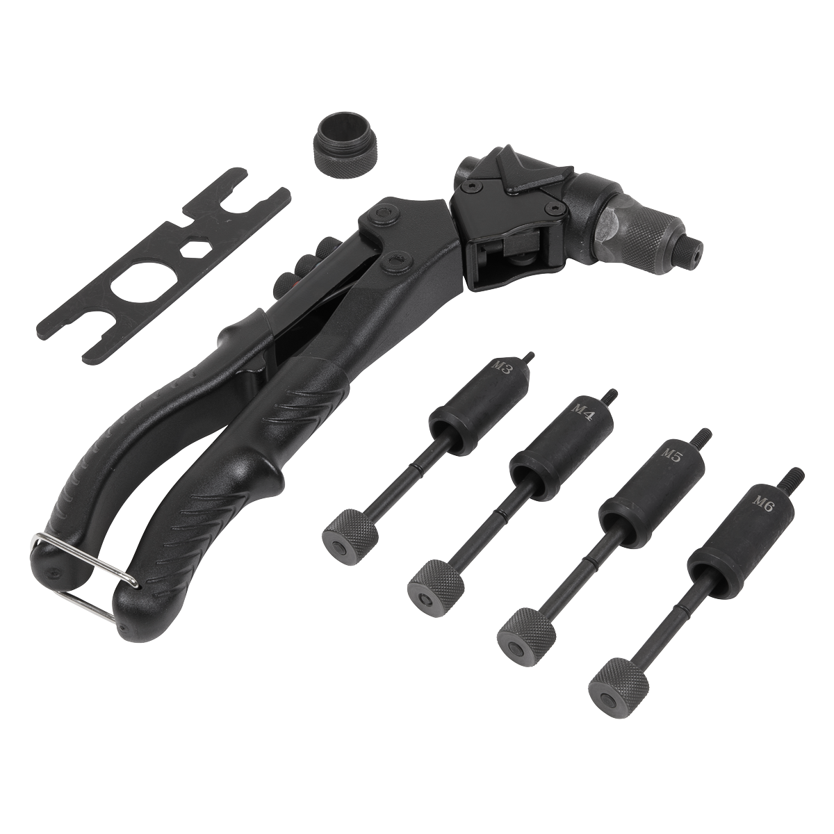 • Four nozzles for blind rivets and four mandrels for rivet nuts.