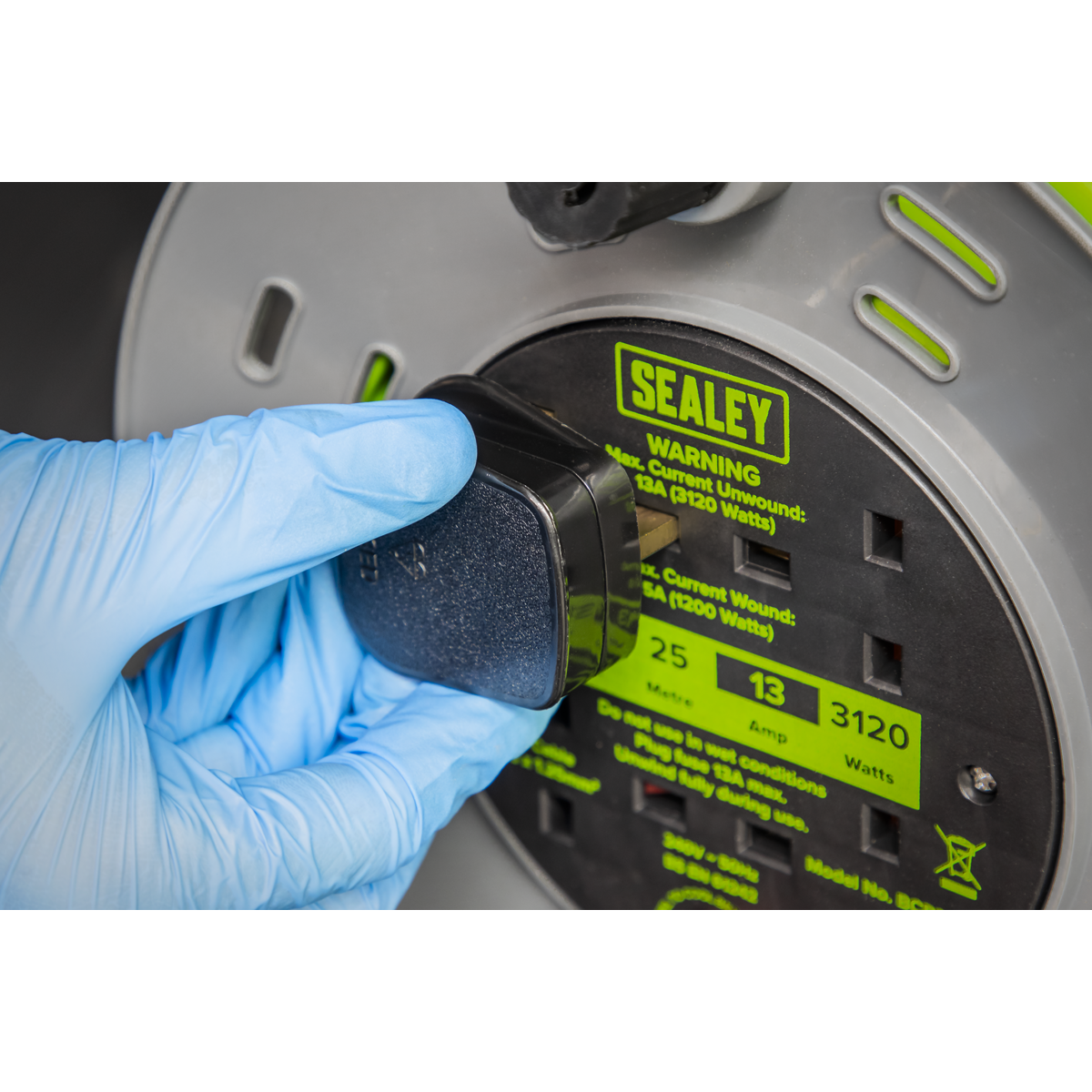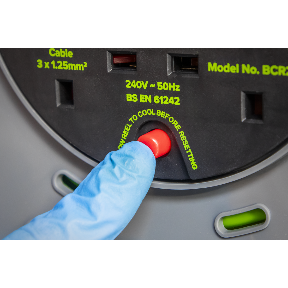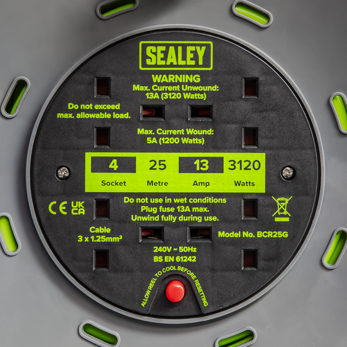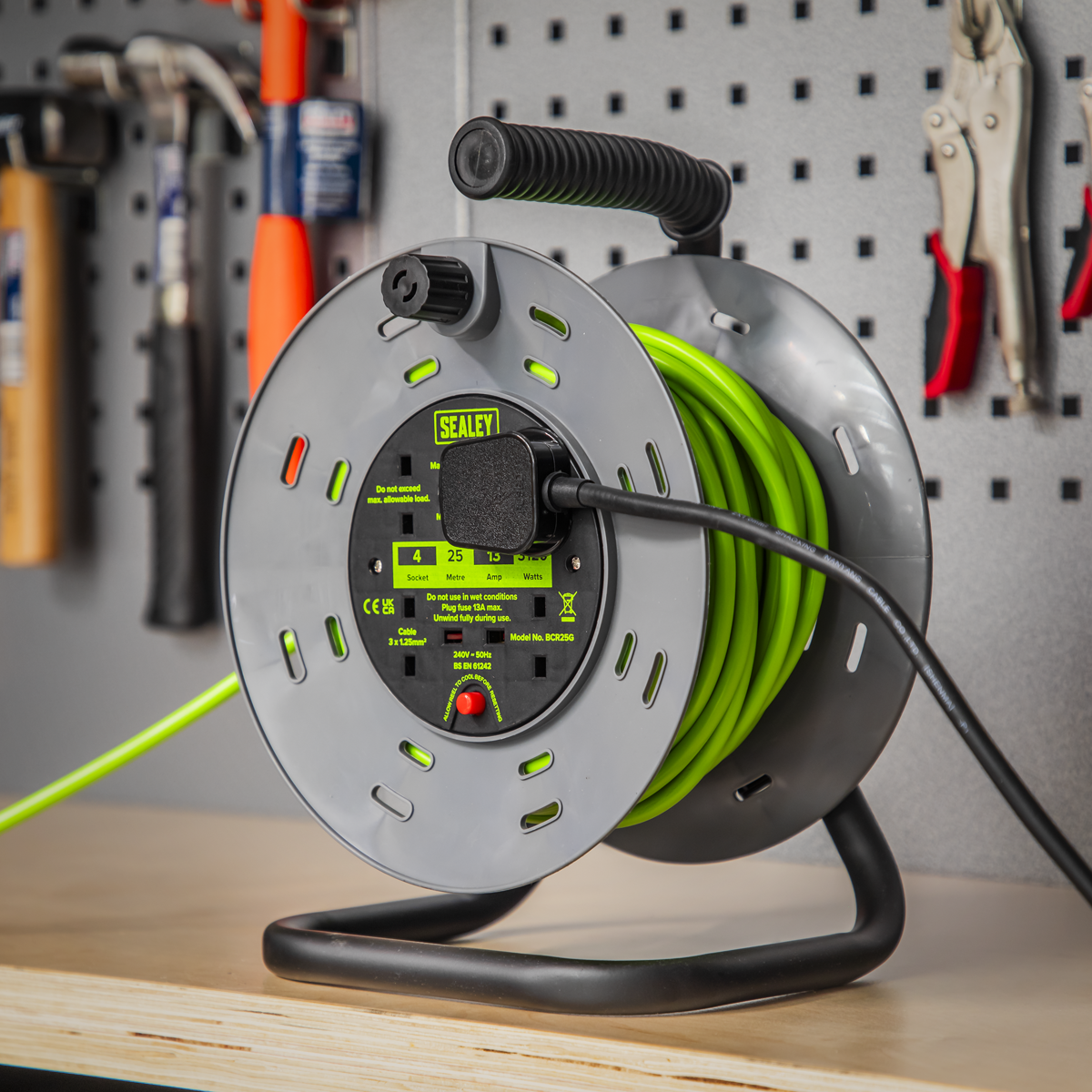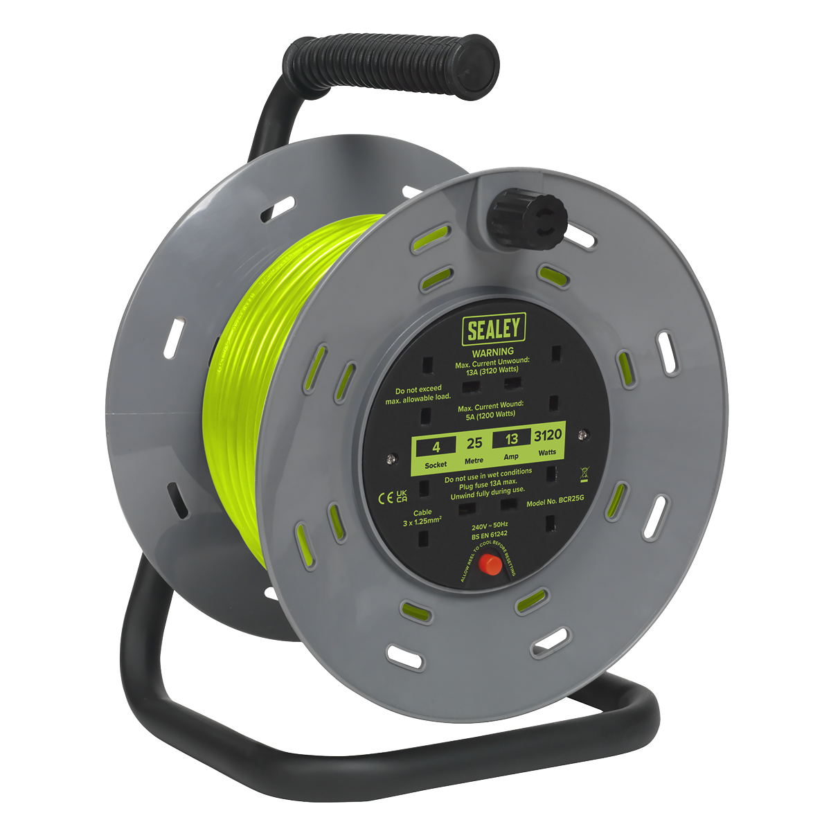 25m Cable Reel with Thermal Trip 4 x 230V - Hi-Vis Green