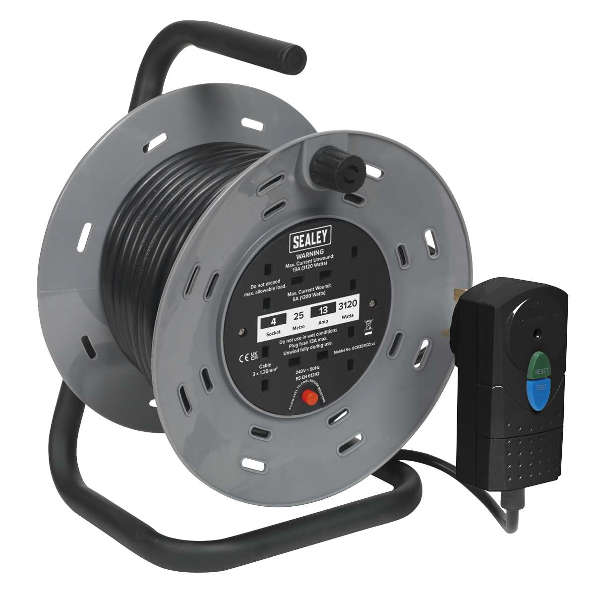 • The RCD device greatly reduces the risk of electrocution and protects all appliances that are plugged into the cable reel.