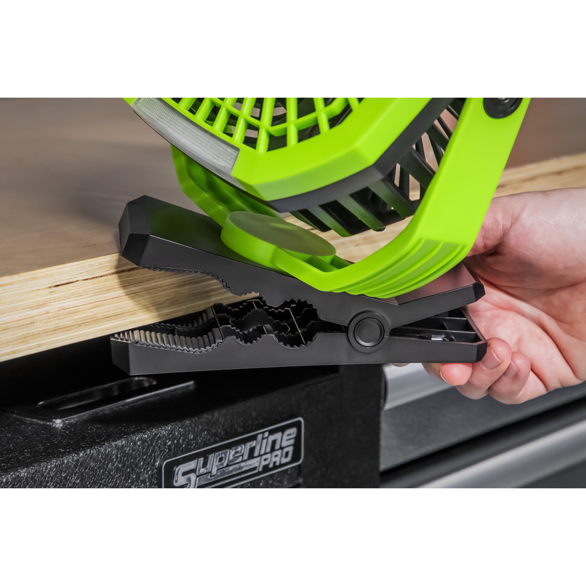 • MULTI-FUNCTION - Portable fan with a light function and heavy-duty clip and magnet base means you can position the fan in any place at any time. Can be used on a desk, in a workshop, in and around the house or outdoors day or night.