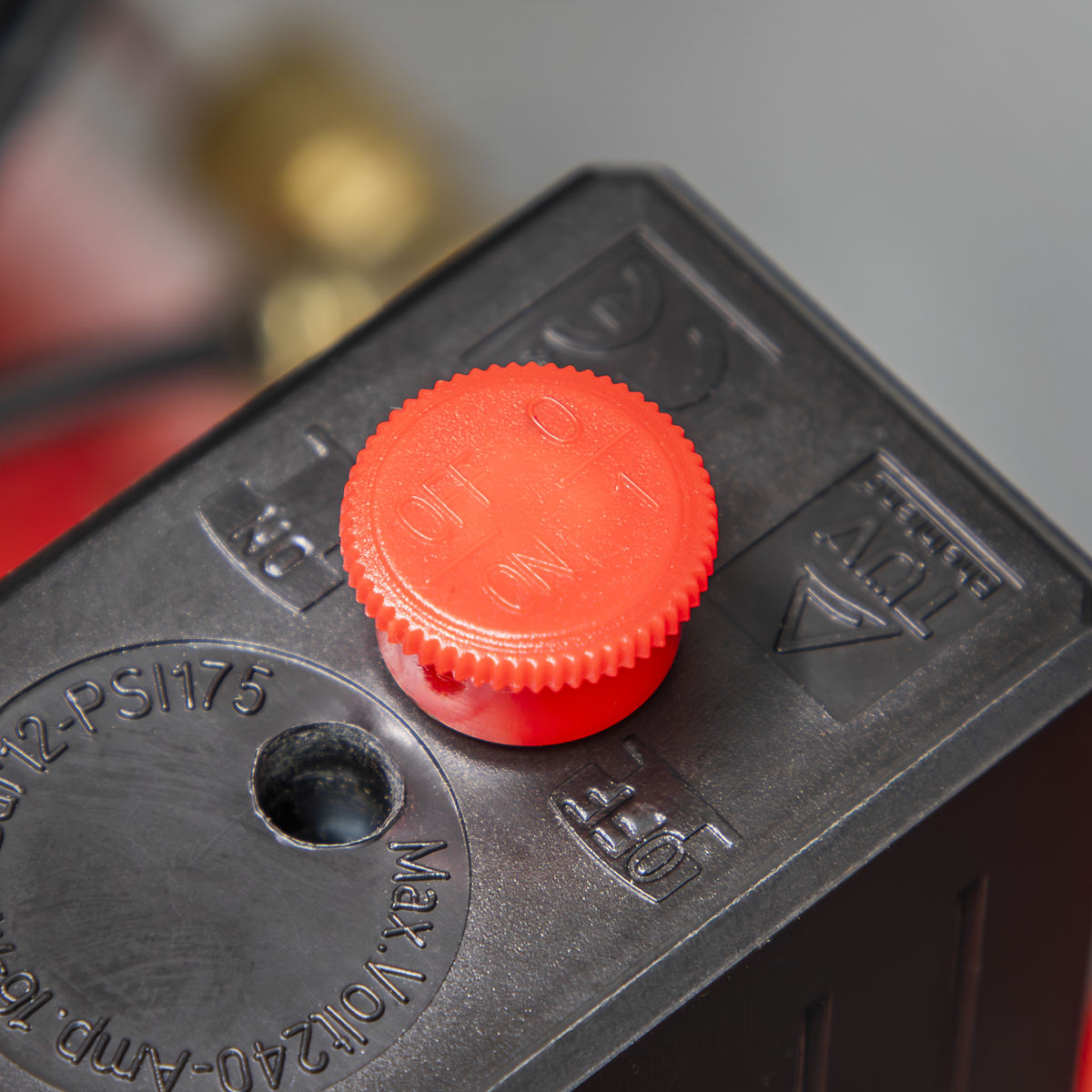 • Fitted with fully automatic pressure cut-out switch, air regulator and pressure gauges for tank and supply.