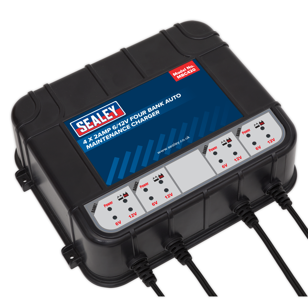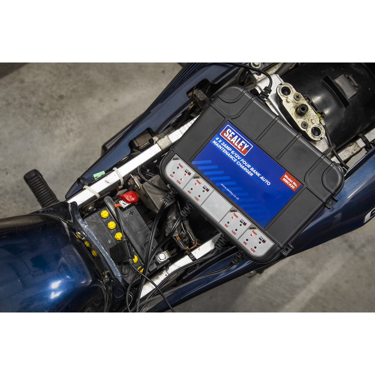 • Compact 6/12V quad bank battery charger perfect for automotive, motorcycle and marine workshops.
