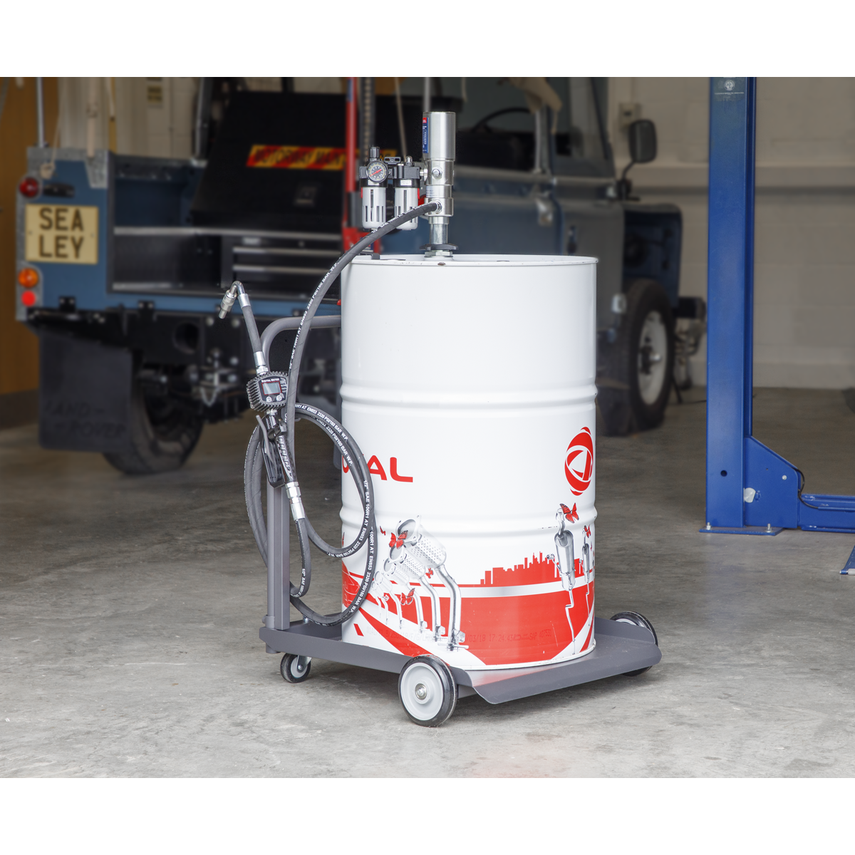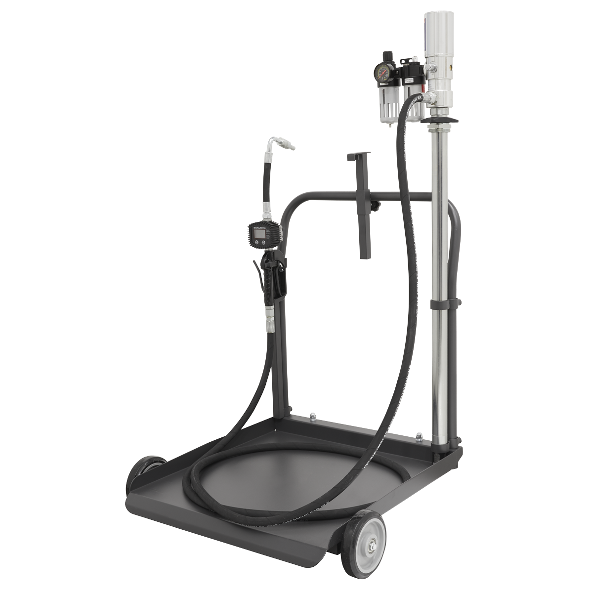 • Mobile oil dispensing unit with air operated 3:1 double acting pump for barrel or tanks with 2"BSP fittings.