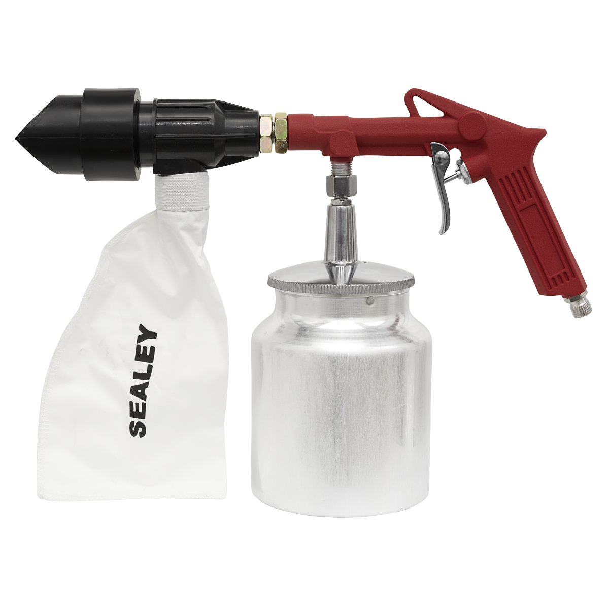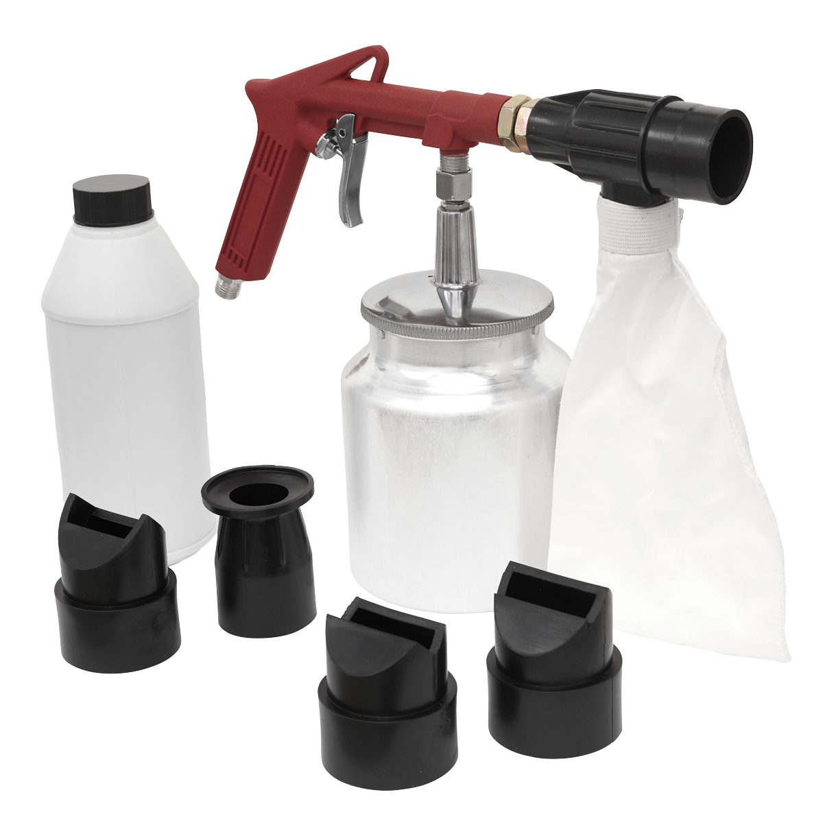 • Supplied with a set of four rubber nozzles for sealing the gun head to the panel and a 700g bottle of blasting grit.