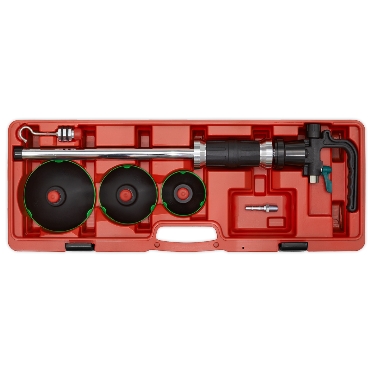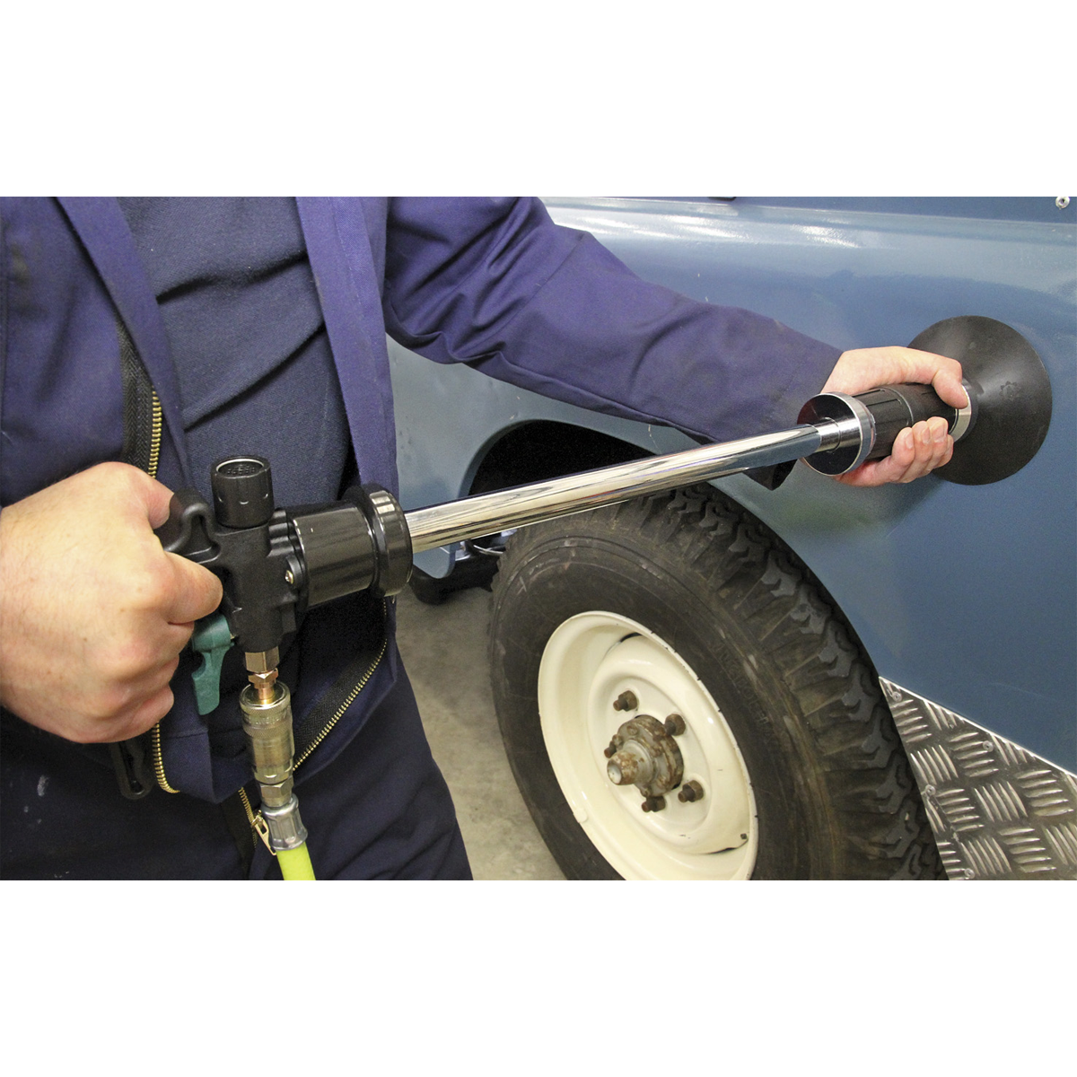 • Air activated suction pad keeps firm hold of panel while slide hammer is used to ease out dents and depressions without damage to the paint surface.
