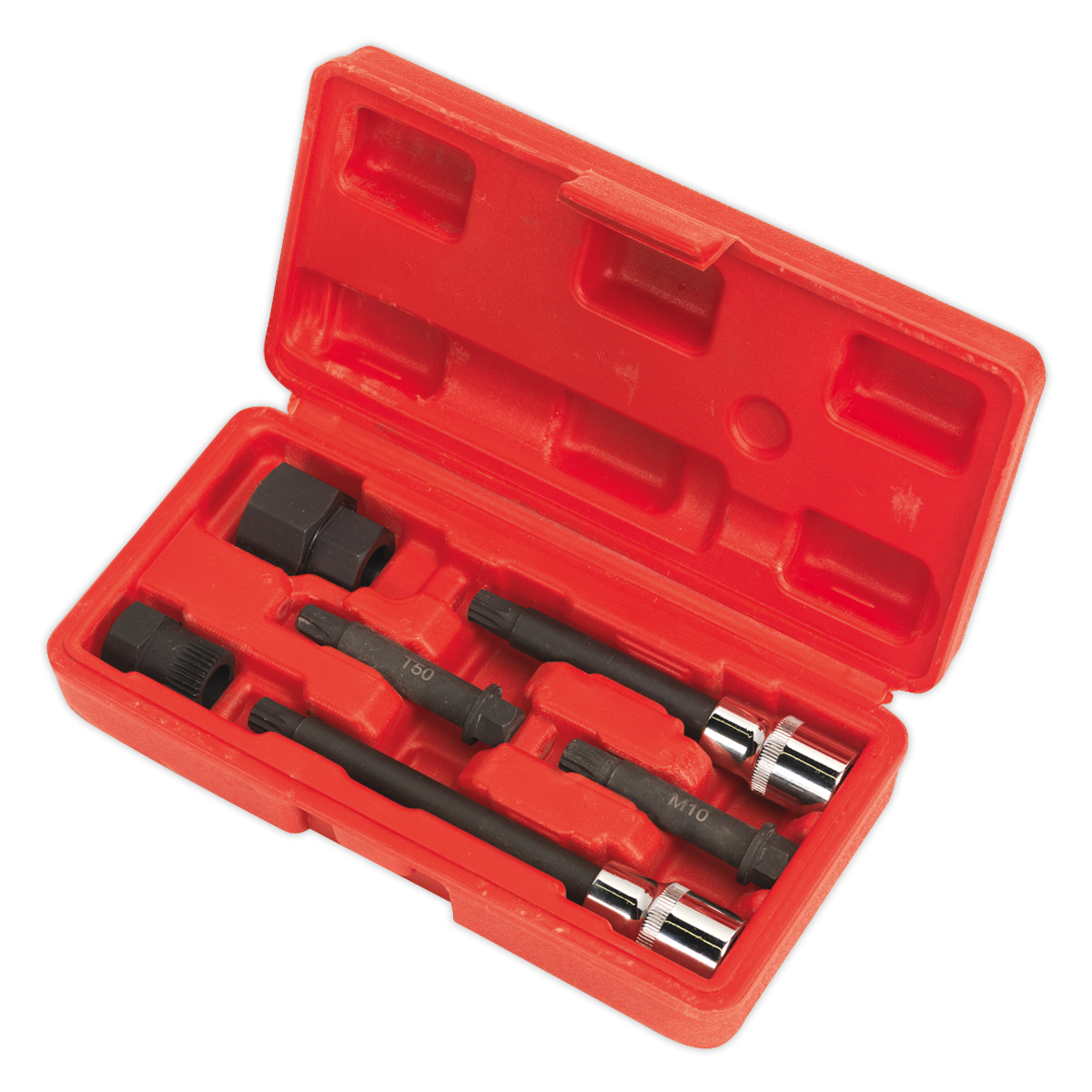 • Insert allows alternator shaft to be held while the pulley retainer is removed with the key nut.