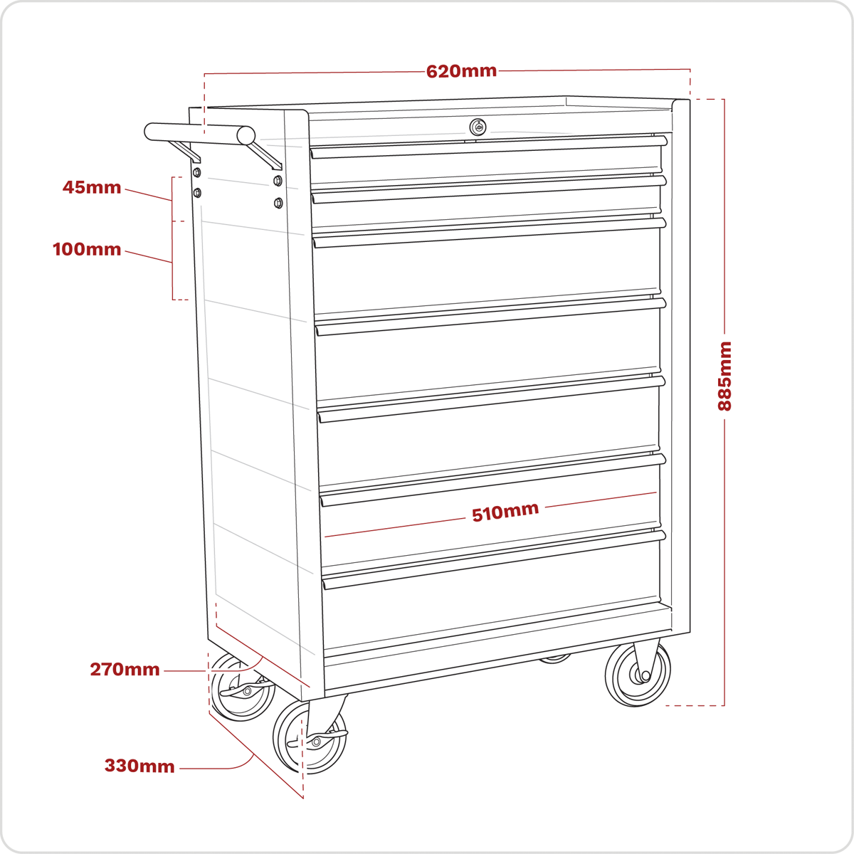 American PRO® Rollcab 7 Drawer - Red/Grey