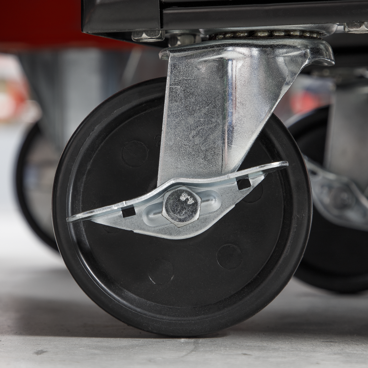• For mobility around the workshop, even when fully laden, the rollcab features hard compound rubber wheels, two fixed and two locking castors.