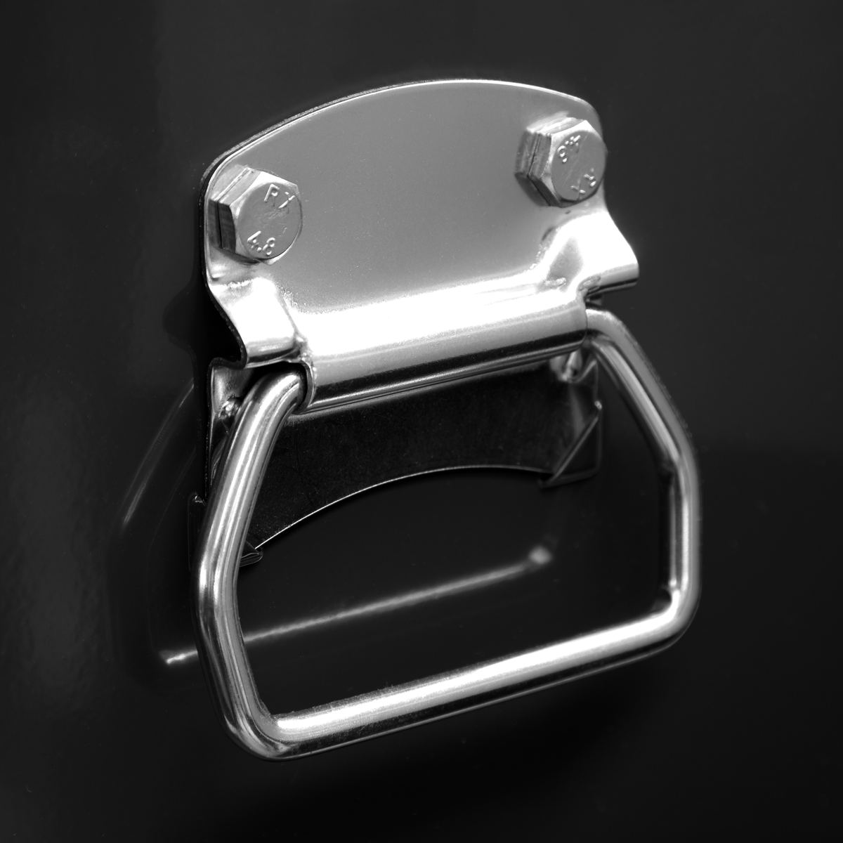 • Features drop-down carry handles, smooth ball-bearing drawer slides, cylinder lock and steel bars that can be locked into place to keep drawers shut for additional security.