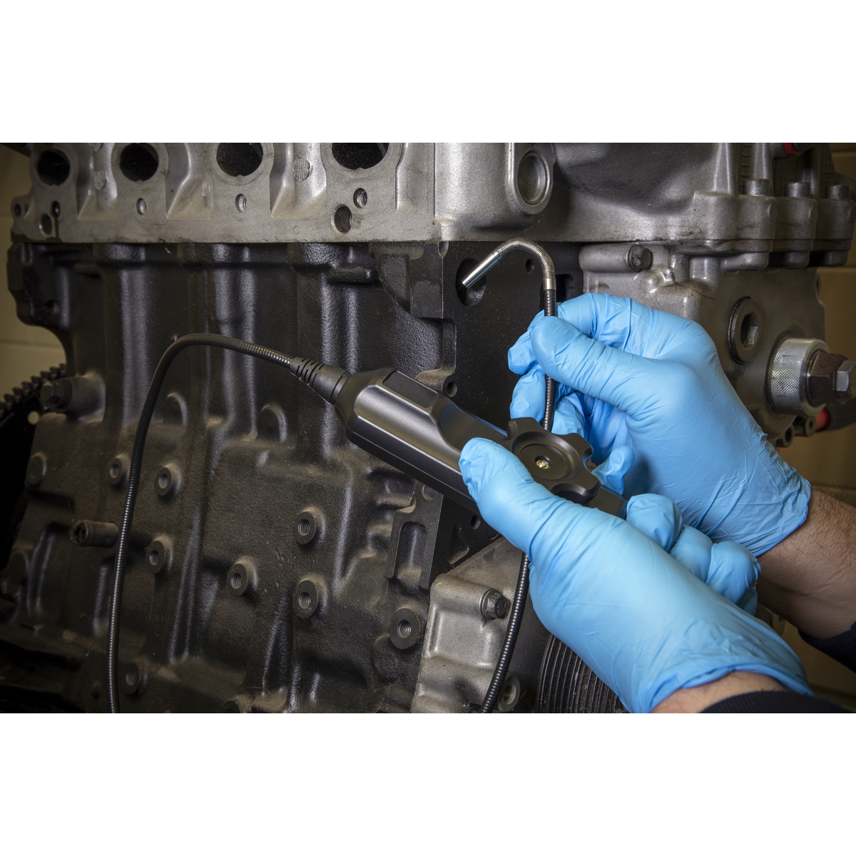 • Mini waterproof (IP67) camera with integral light (Ø6mm) mounted on 800mm flexible 2-way articulated probe.