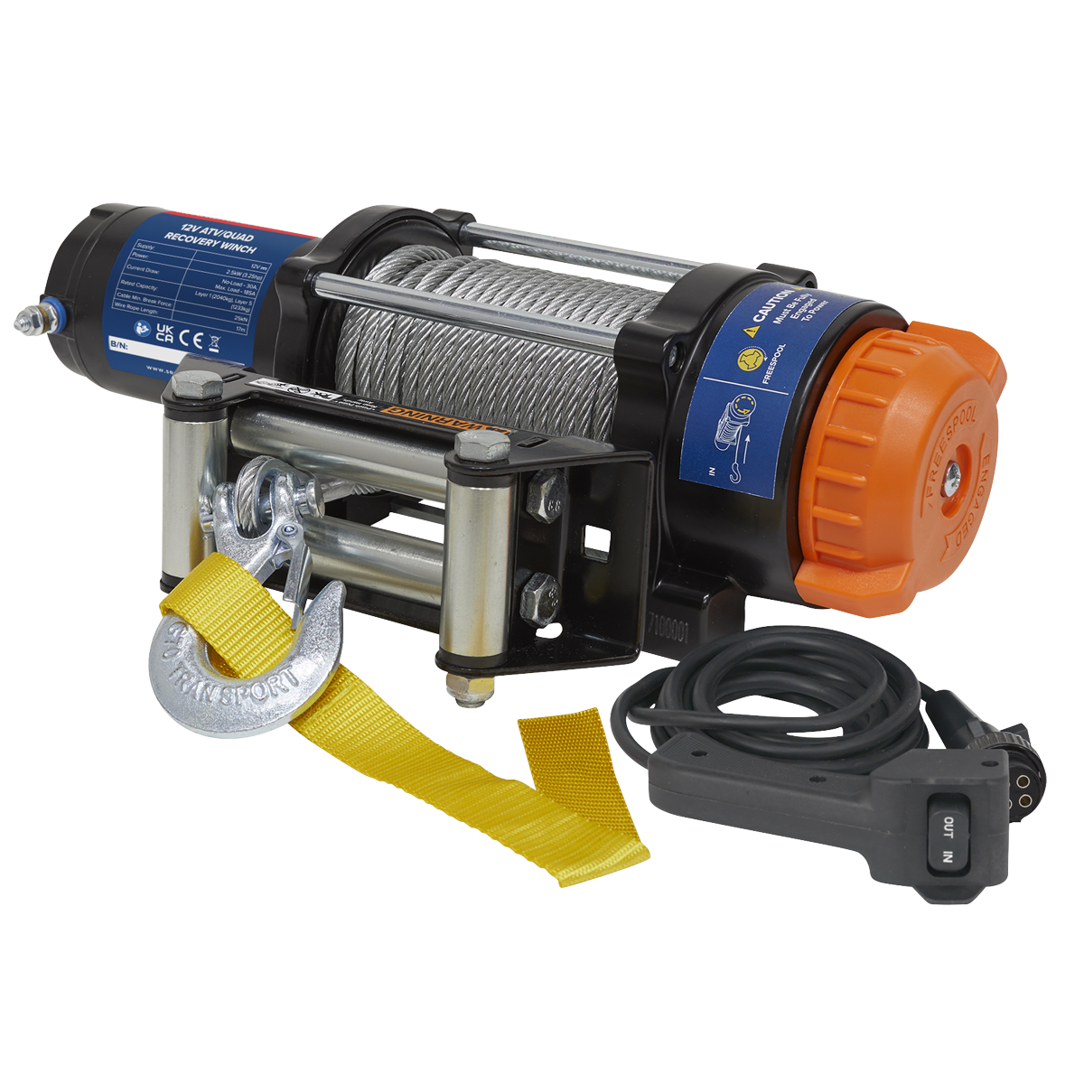 ATV/Quad Recovery Winch 2040kg (4500lb) Line Pull 12V