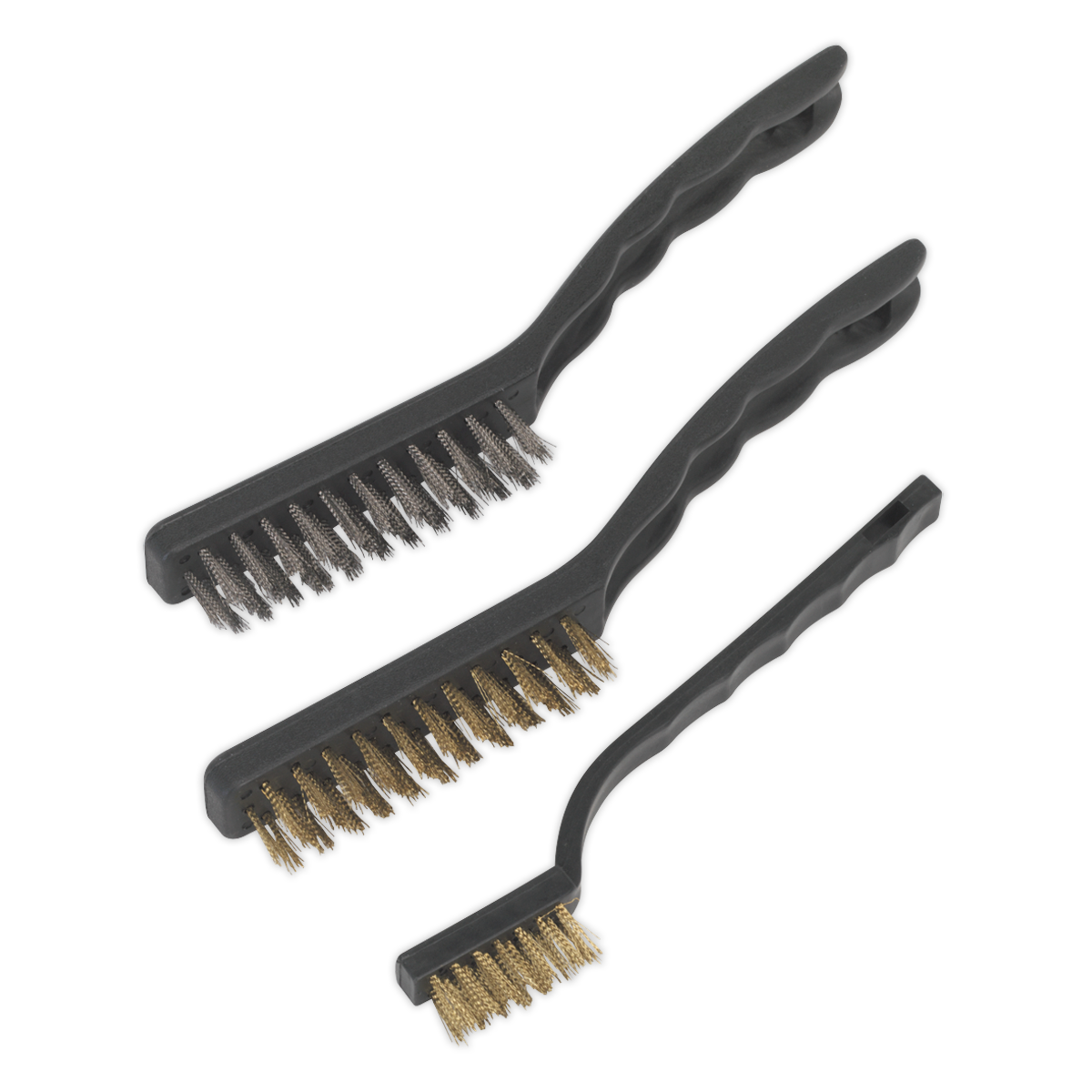 • Small and medium (35 and 90mm headed) brass filled brushes, for components such as glow/spark plugs and contacts, and a large steel filled brush (90mm head) for removal of rust and welding slag.