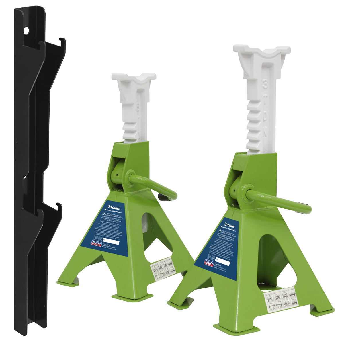 Axle Stand & Axle Stand Storage Rack Combo 3 Tonne - Hi-Vis Green