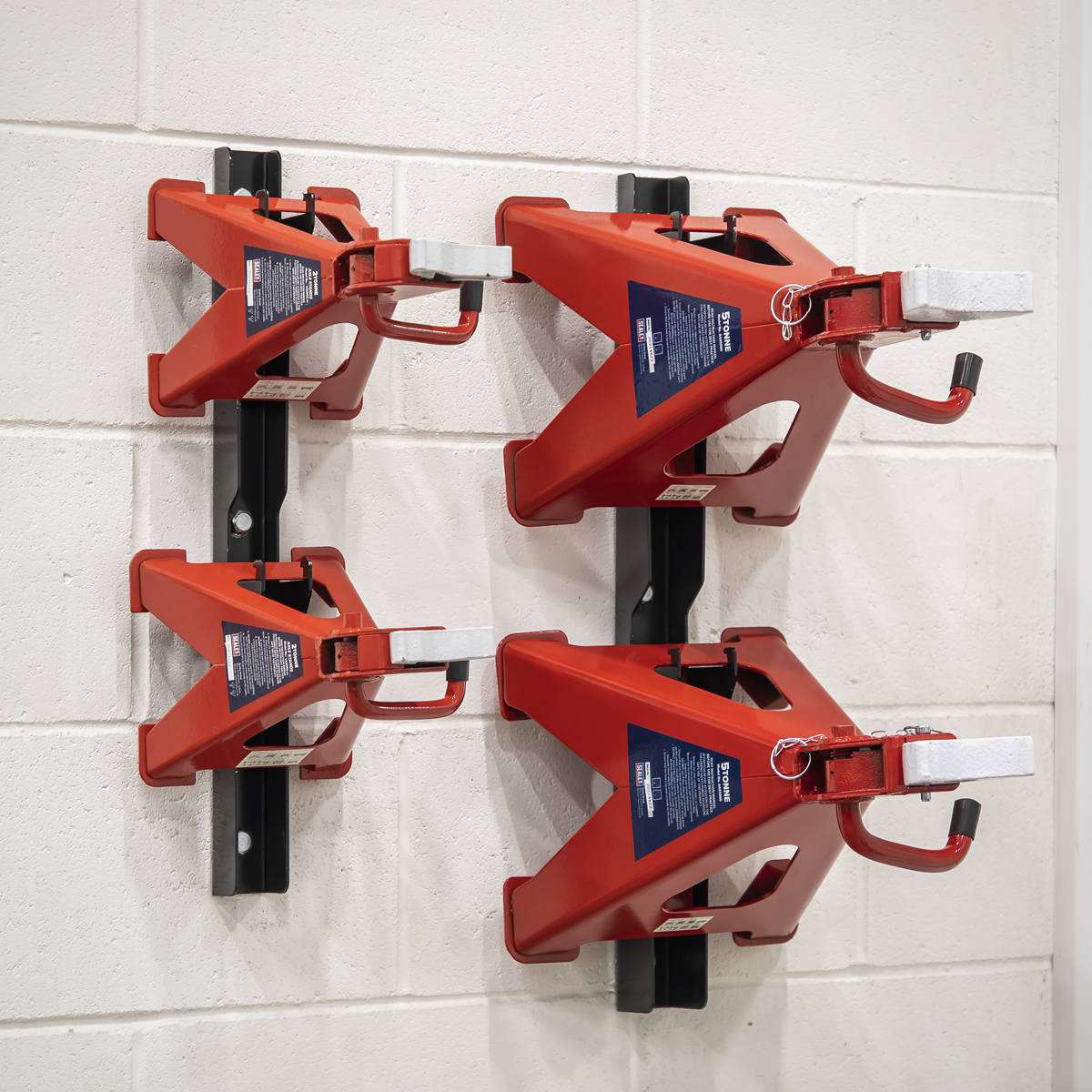 • SPACE SAVING - Saves floor/cabinet space by enabling axle stands to be mounted securely to a wall.