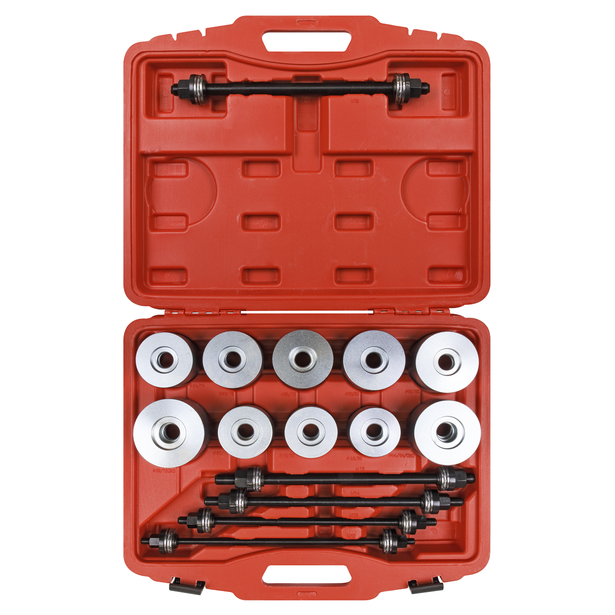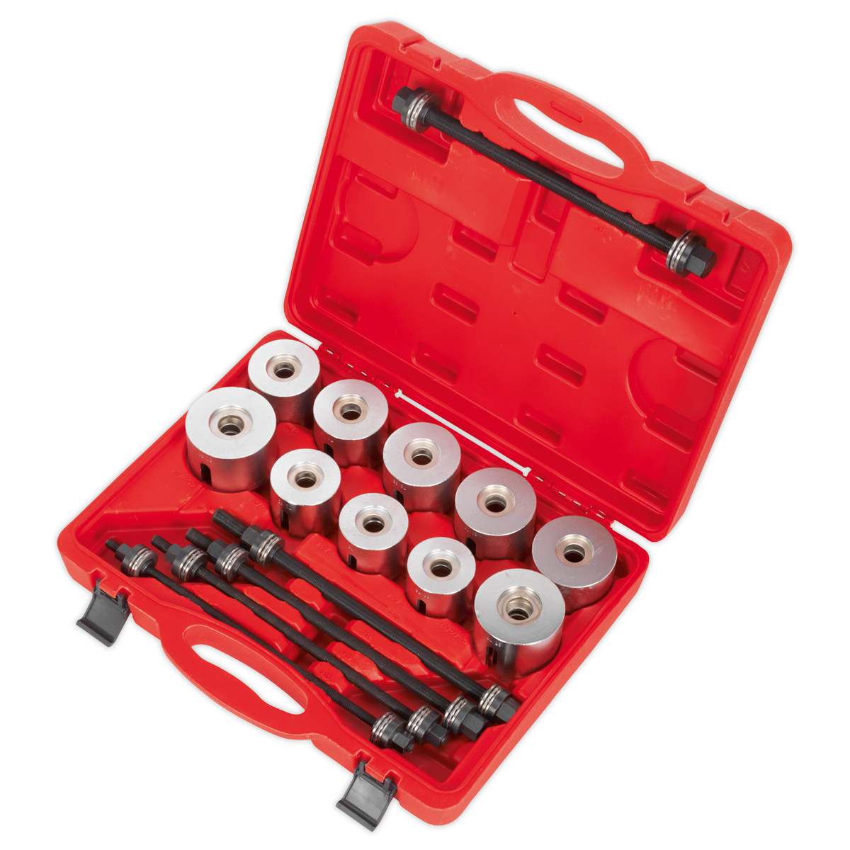 • Comprehensive kit for fast and effective in situ removal/installation of wheel bearings, suspension bushes and seals.