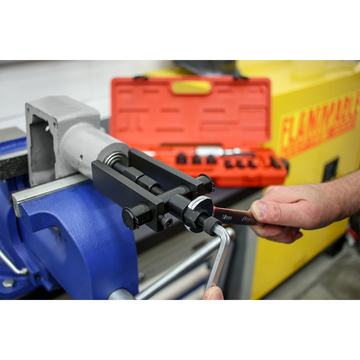 • Gently removes blind bearings where the use of a slide hammer may damage the surrounding material.