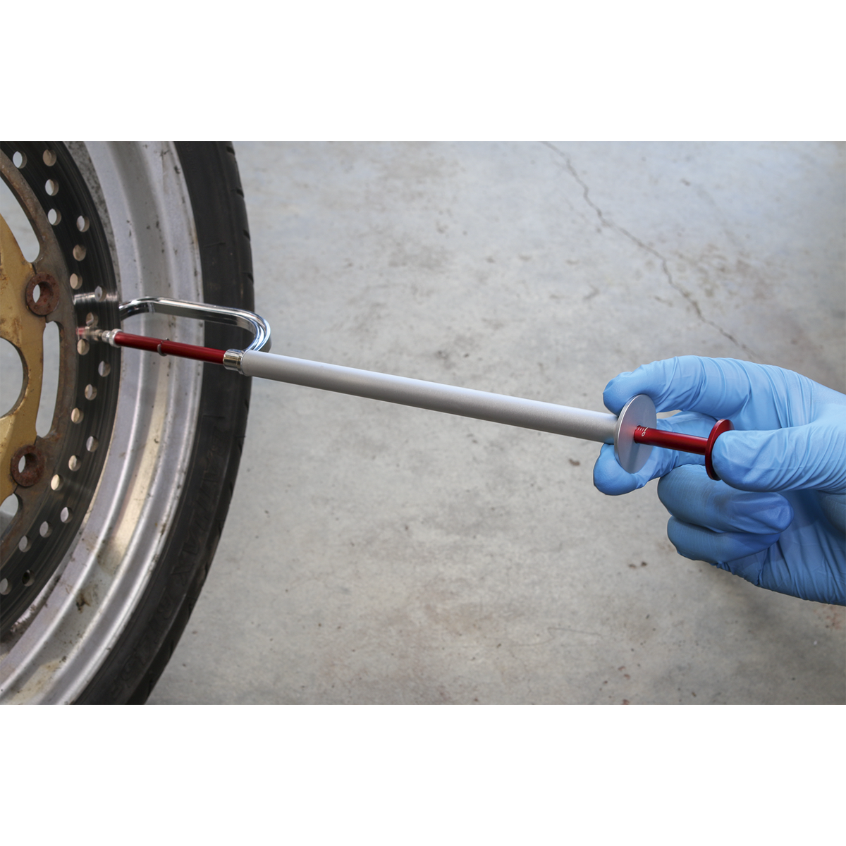 • Long body design, allows use on some vehicles without the need to remove the wheel.