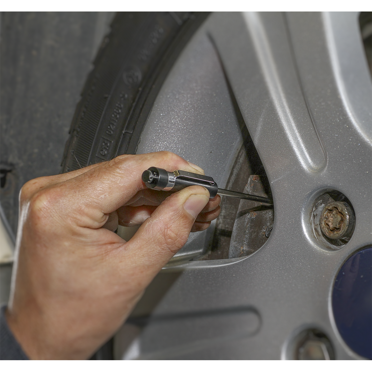 • Slim design enables the tool to locate the rear of the pad backing plate, allowing the probe to measure the distance between the underside of the backing plate and brake disc.