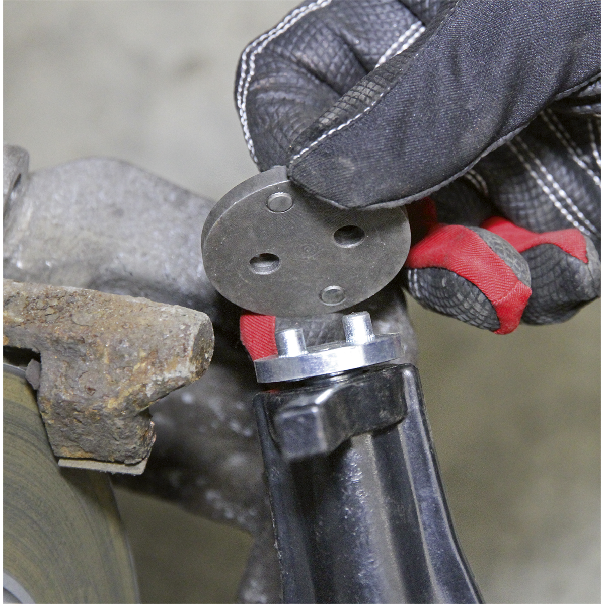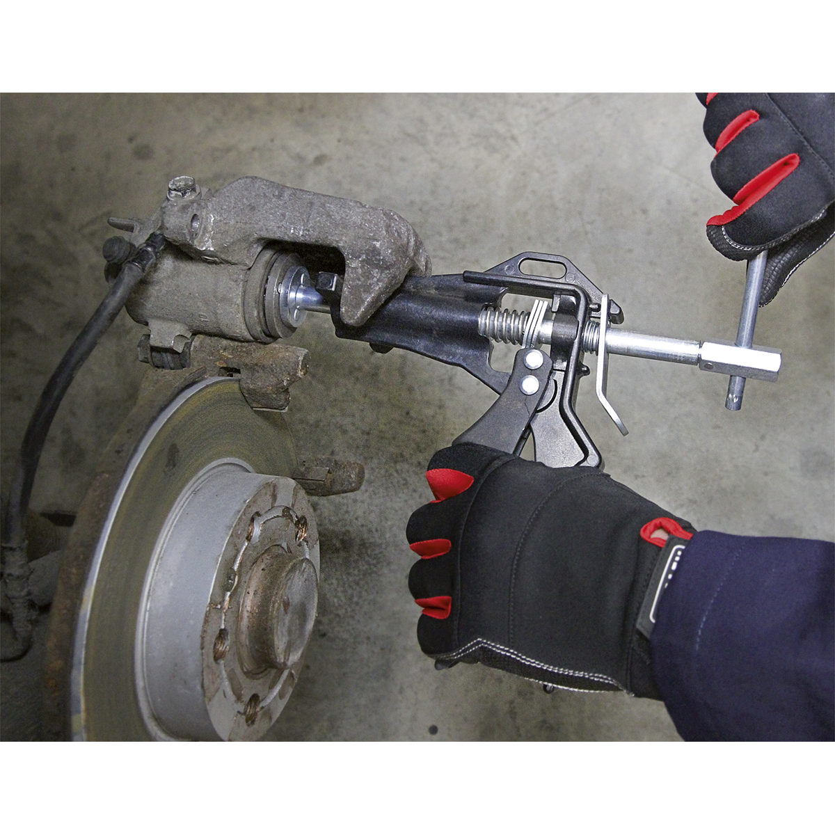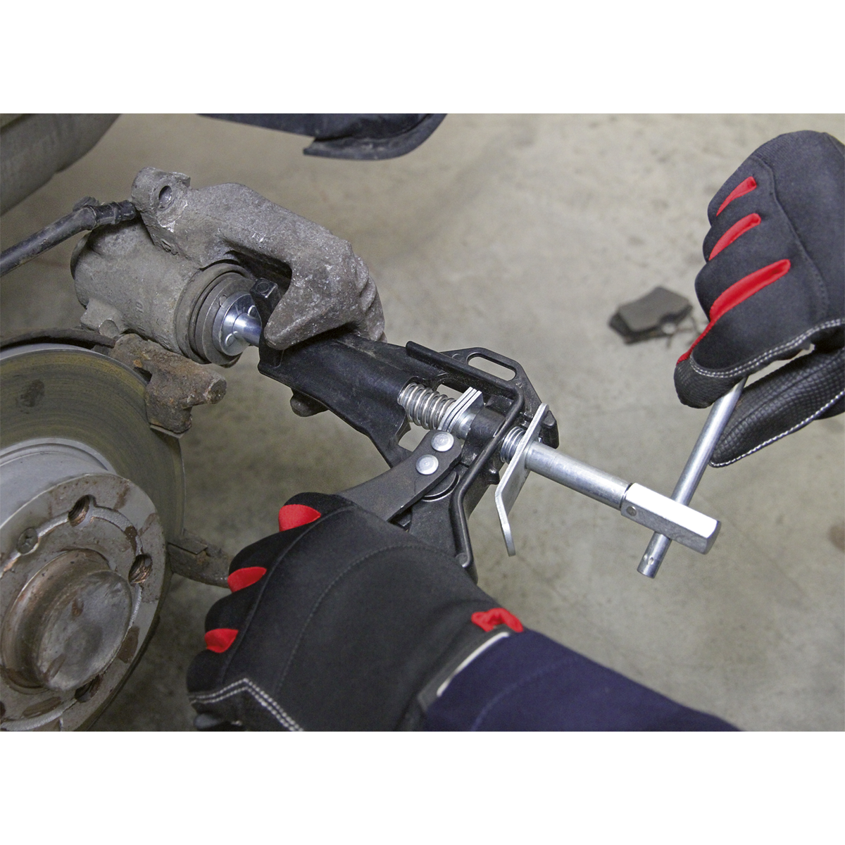 • Innovative dual purpose tool designed to push and wind-back brake calipers.