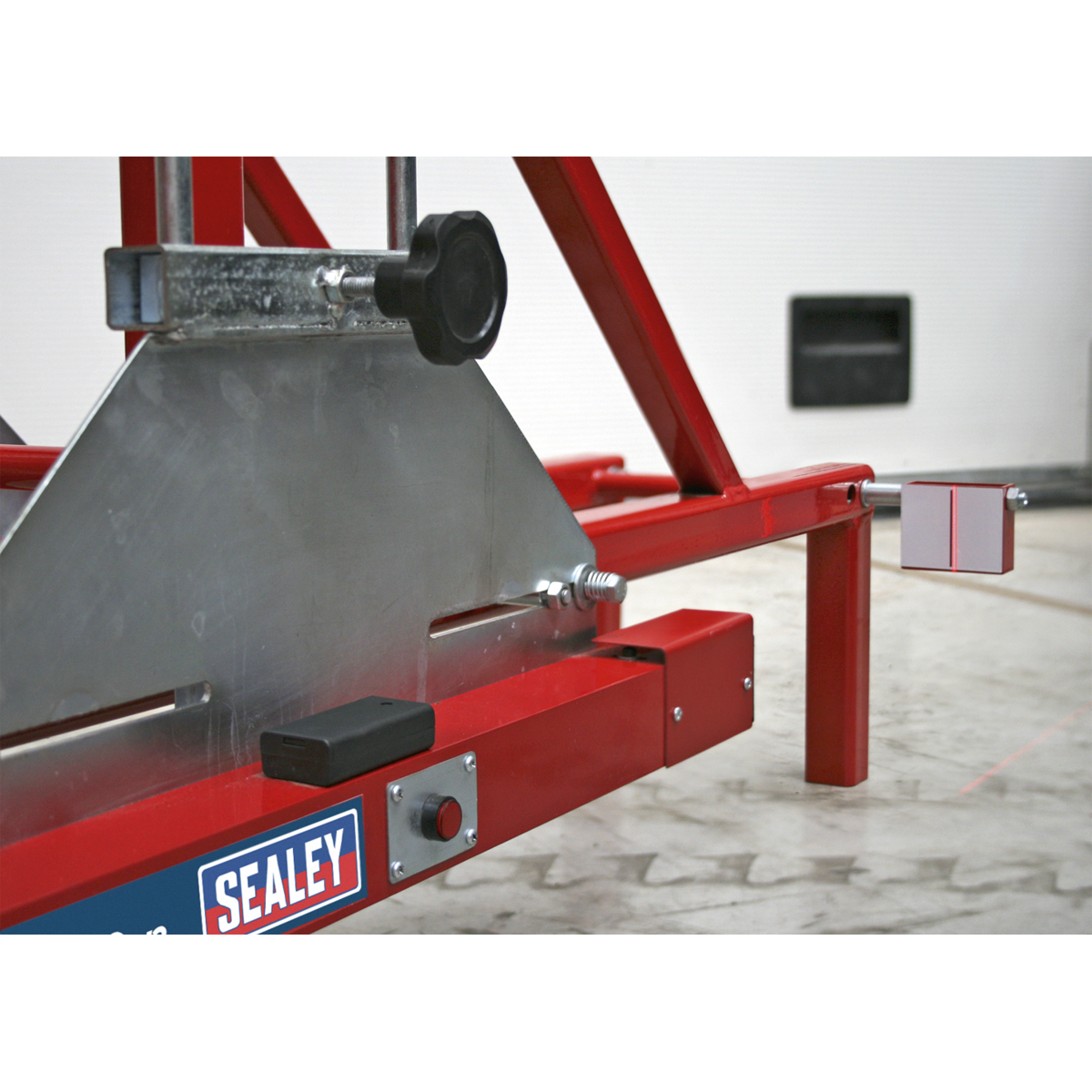 • Laser heads secure to the rig and rest on the bobbins that contact the vehicle’s wheel rim.