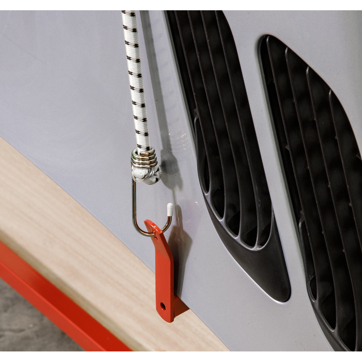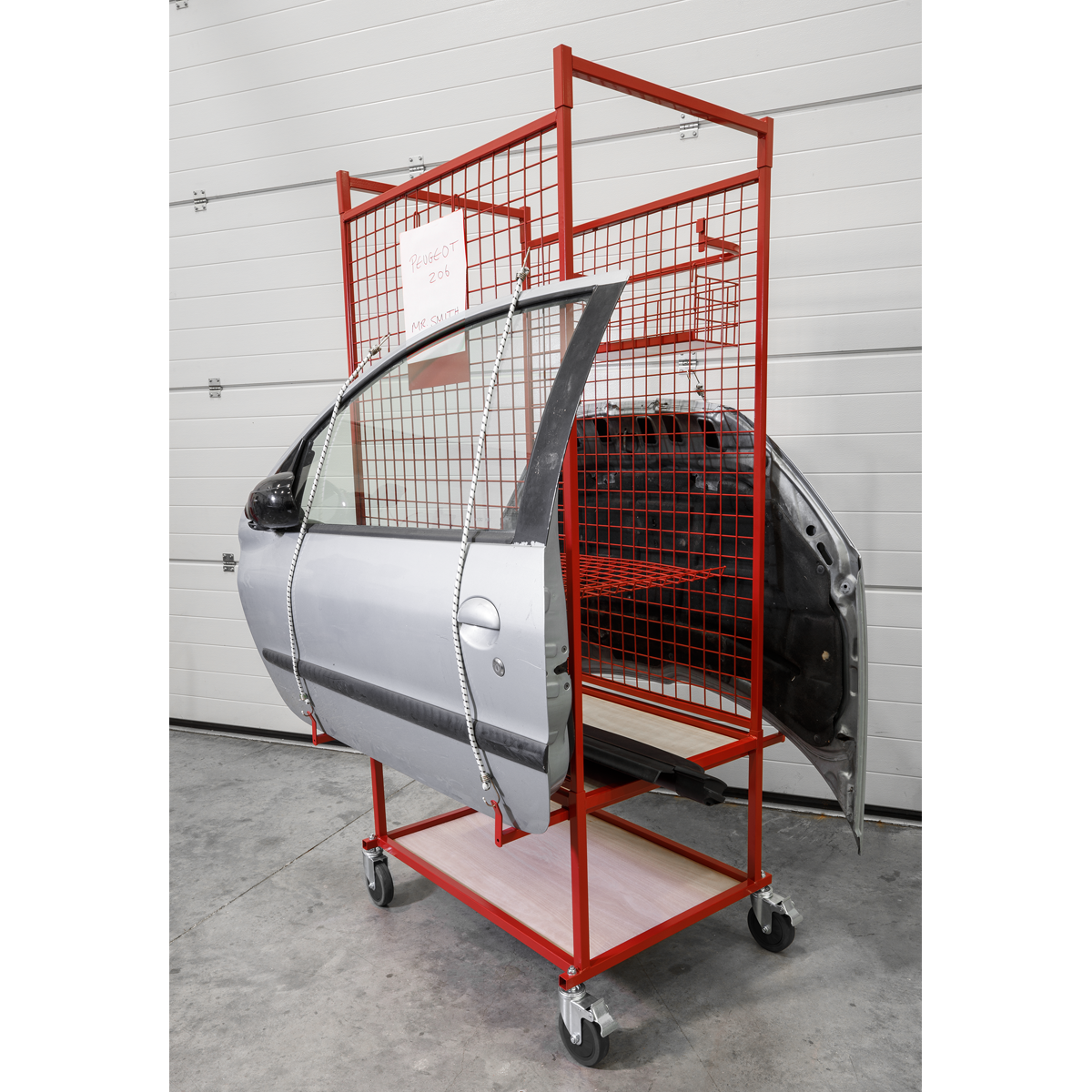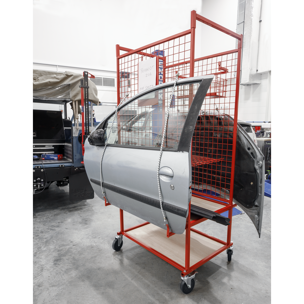 • Equipped with hanging rack for bumpers and exhaust pipes.