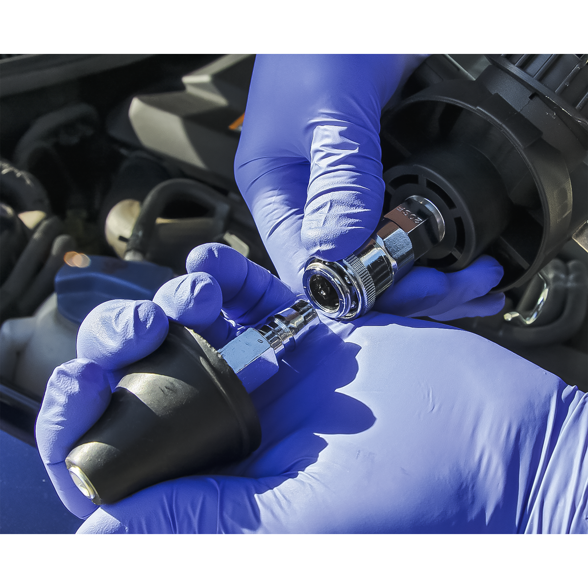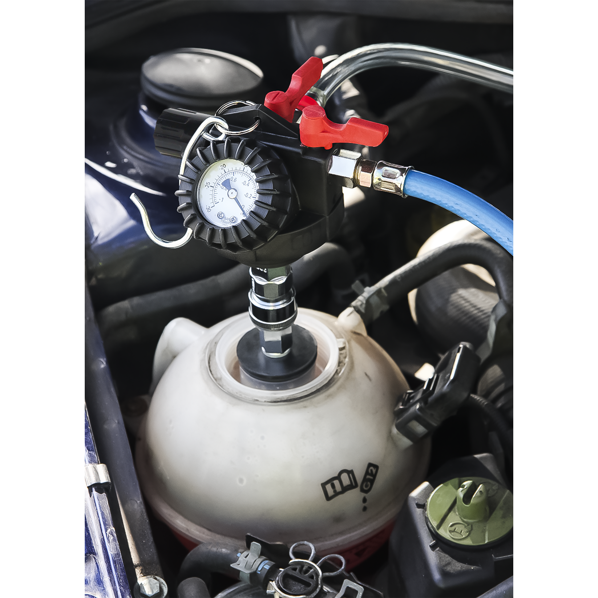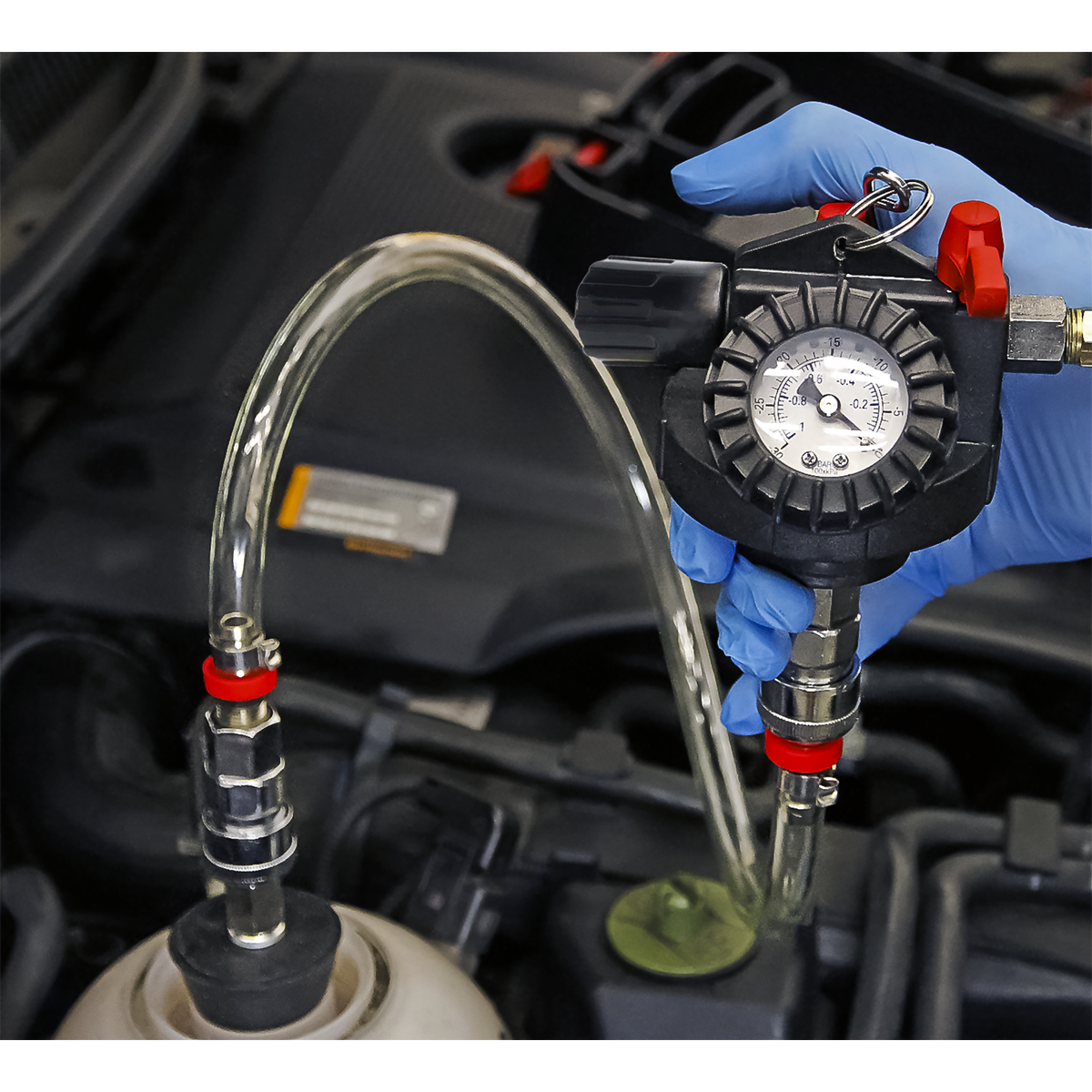 • Simple operation requires workshop air supply and does not require fiddly interchange of vacuum and fluid hoses - as found on other versions of this tool.