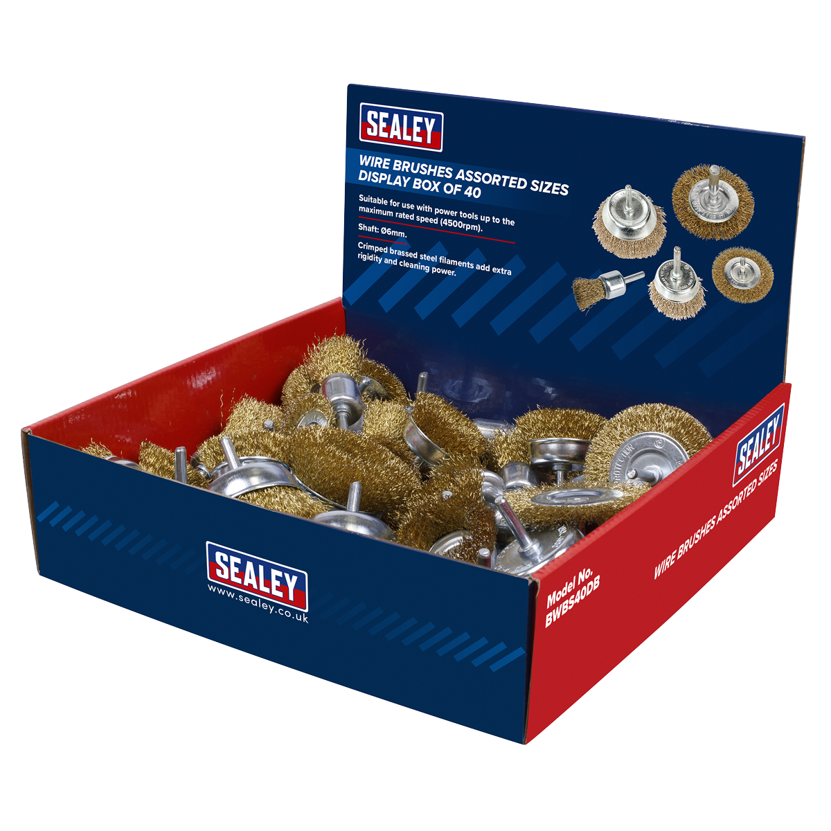 Crimped Wire Brushes Assorted Sizes - Display Box of 40