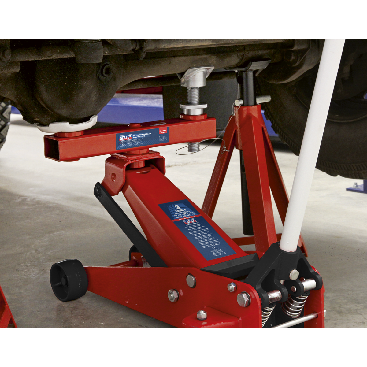 • EASY-TO-USE - Simply remove the existing trolley jack saddle, replace with cross beam adaptor, fit the jack saddle into the hole in the adaptor (30mm spigot pin) and you are ready to lift.