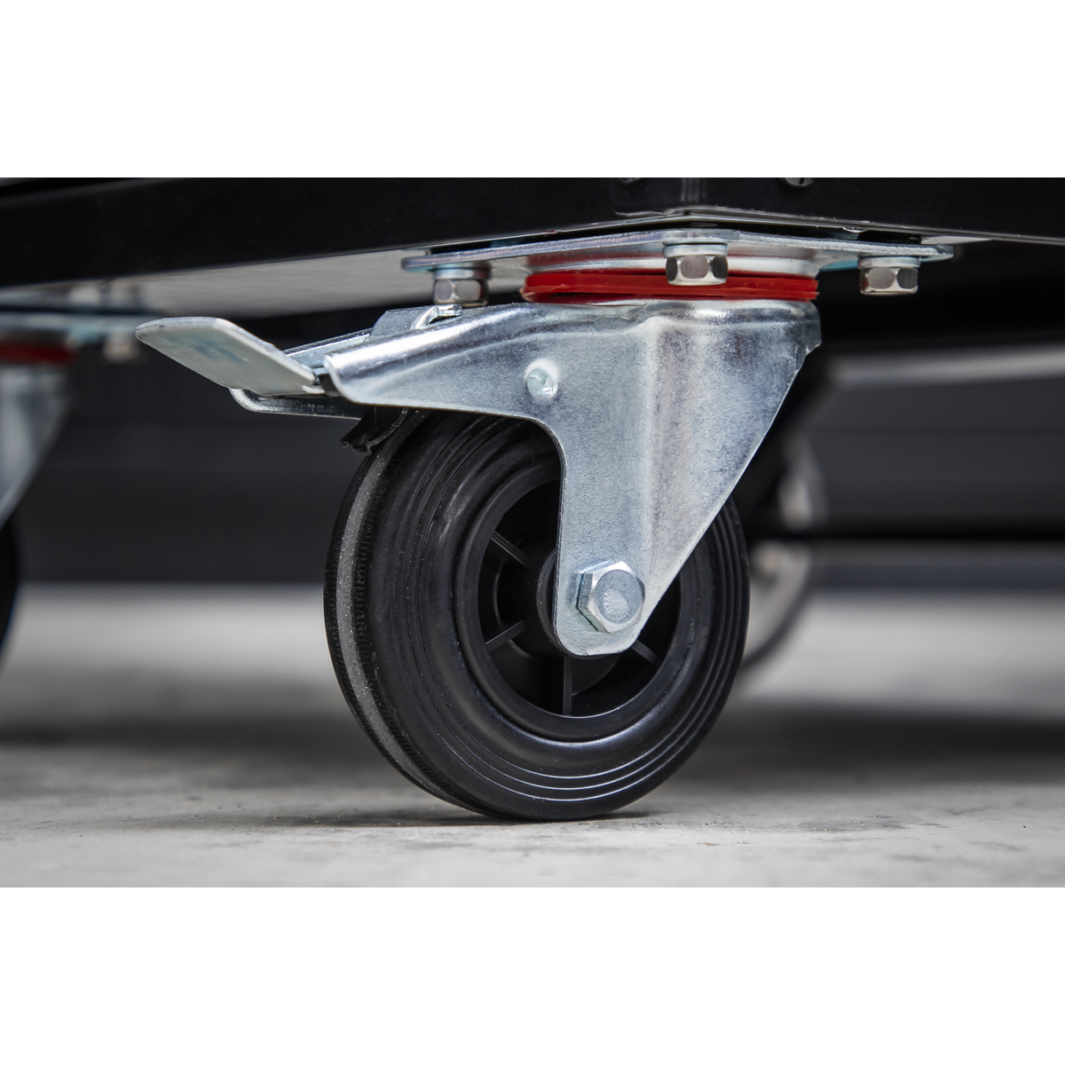 • MANOEUVRABLE - Easily manoeuvrable with ergonomic side handles, two front steering swivel castors and two rear fixed wheels.