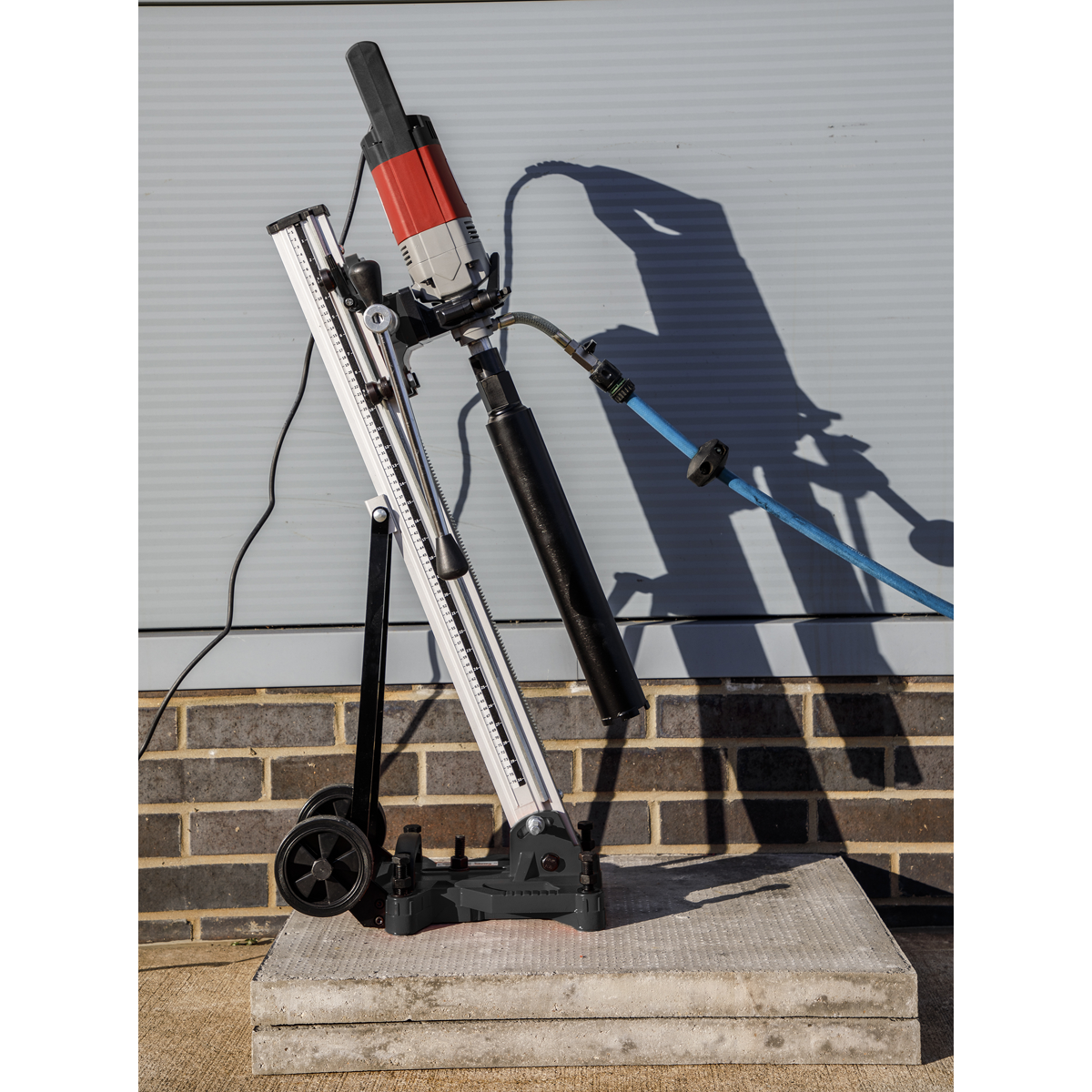 • Lightweight aluminium diamond core drill stand features tilting mechanism and base plate with anchor fitting.