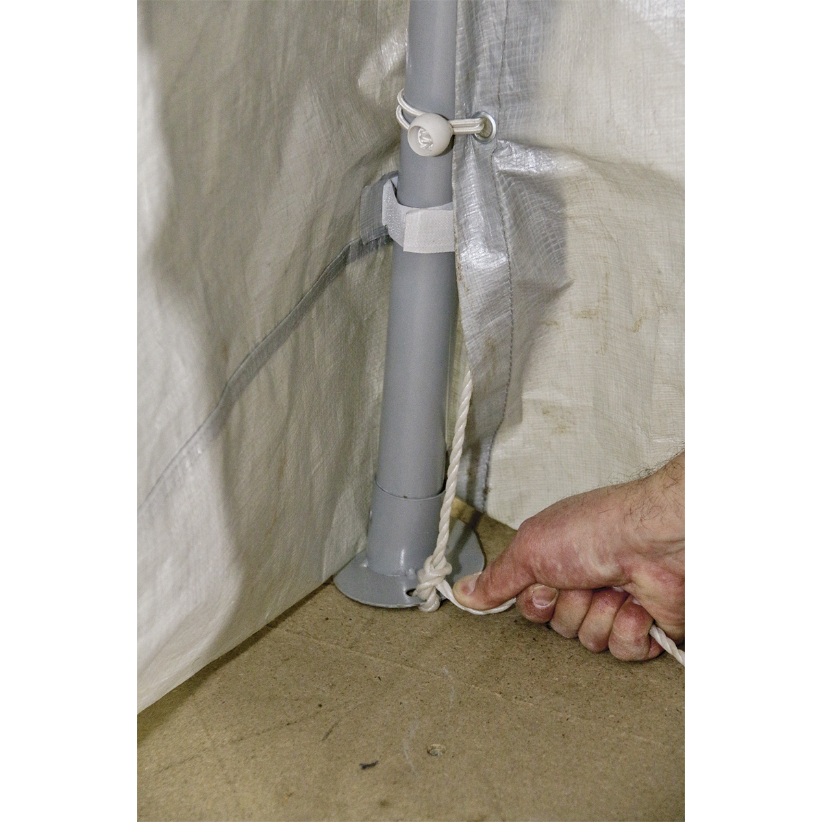 • Included stake pegs secure the shelter, a dirt skirt on both sides further protects against crosswinds.