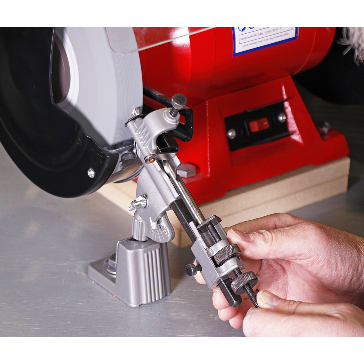• Ideal for use with any standard bench grinder, the grinding attachment provides quick and precise sharpening of 3-19mm (1/8-3/4") HSS twist drill bits with a 75mm minimum length.