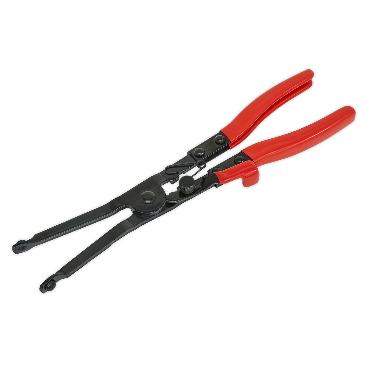 • Comfort grip handles with self-locking mechanism aid working on spring clamps.