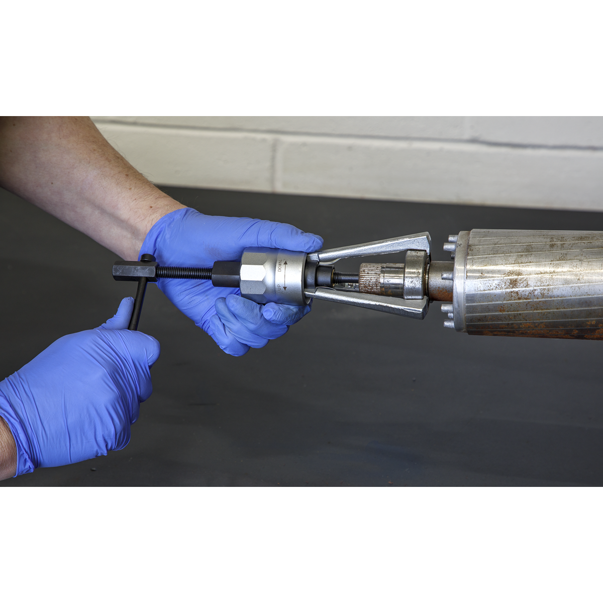 • Spring loaded and drop-forged legs are secured around the bearing or gear by a screw collar to prevent slipping and subsequent damage or injury.