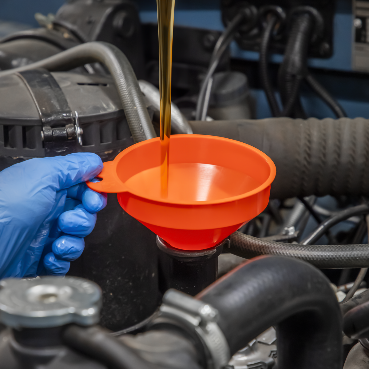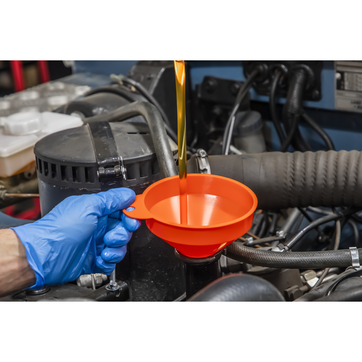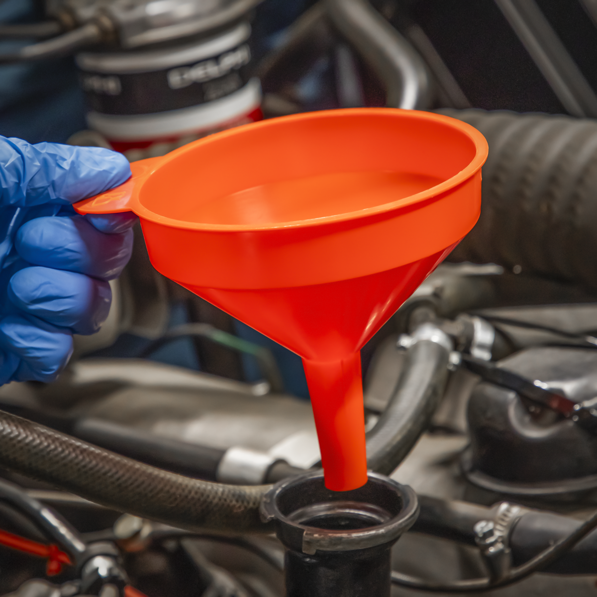 • Polyethylene funnel resistant to oil, fuel and some acids.