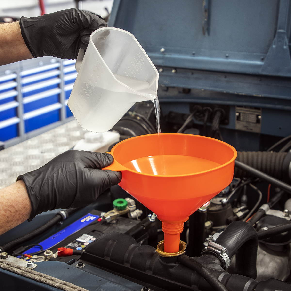 • Polyethylene funnel resistant to oil, fuel and some acids.