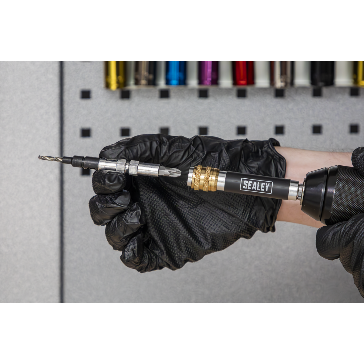 • QUICK RELEASE CHUCK - Swift flip over allowed by quick release chuck on the extension bit holder.