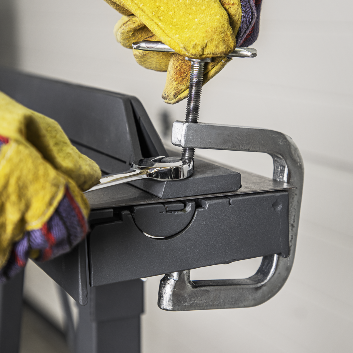 • Unique patented endless design and removable folding plate allows the user to fold, channel and offset any length of sheet metal up to 20 gauge thick.