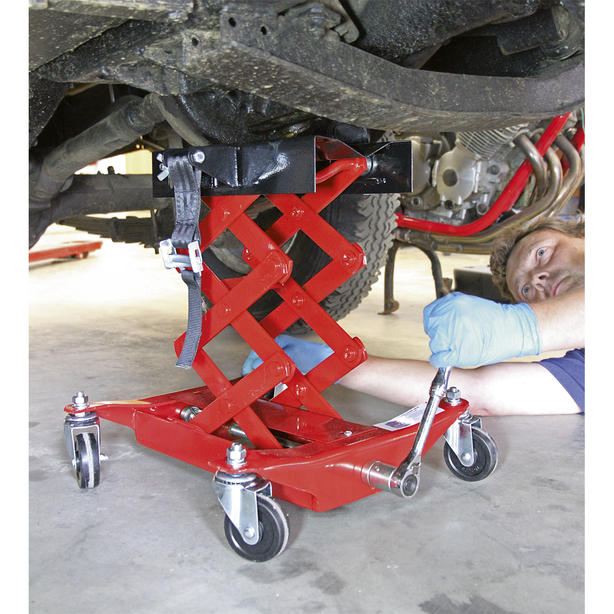 • Easy-to-use scissor mechanism, which is hand operated, for precision when fitting the transmission unit.