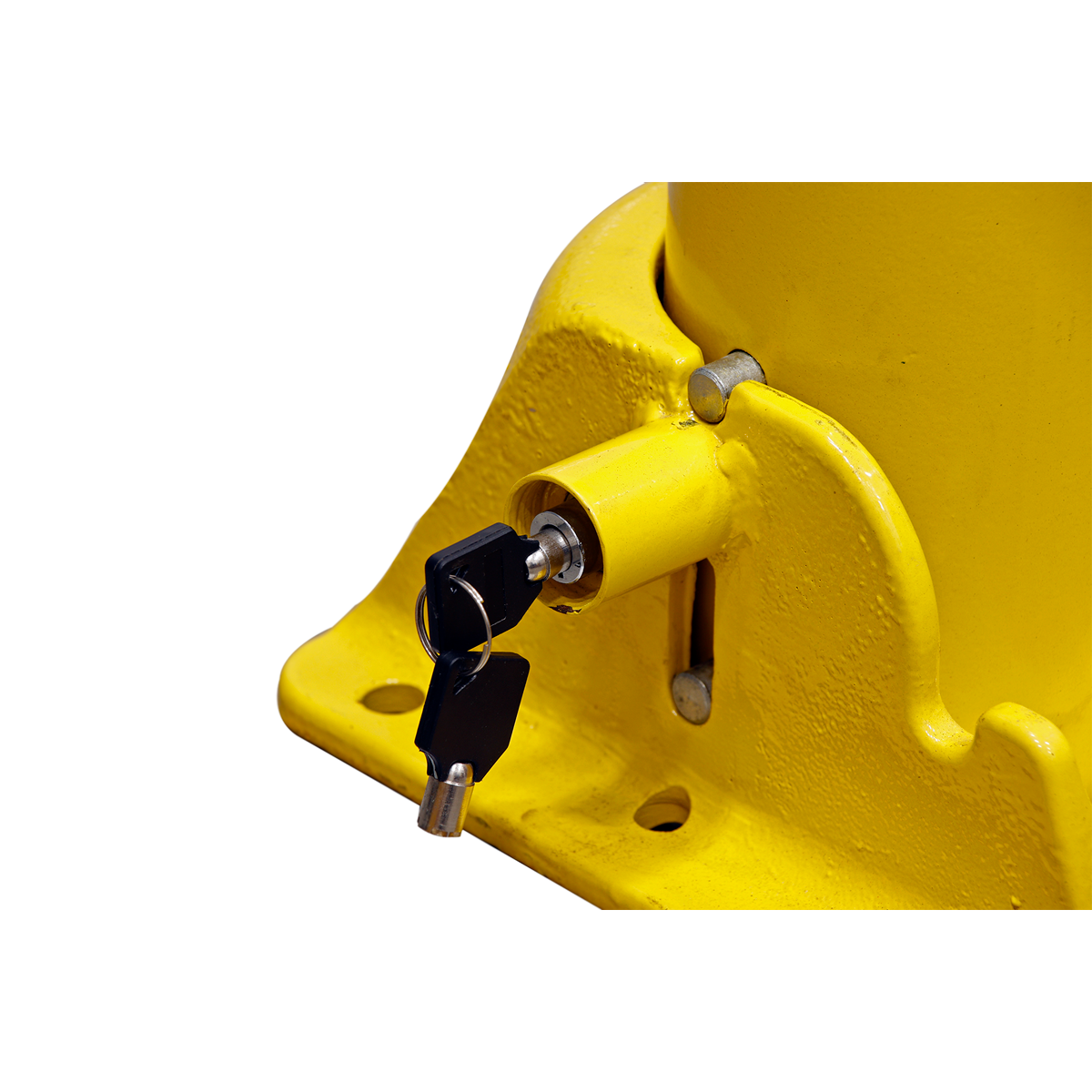 • Integral lock recessed in base section, which releases the base of the bollard, allowing it to pivot 90° to lay flat on its protective rubber pad.