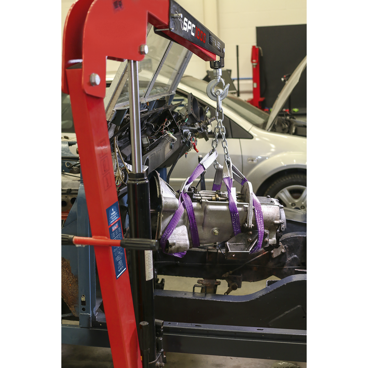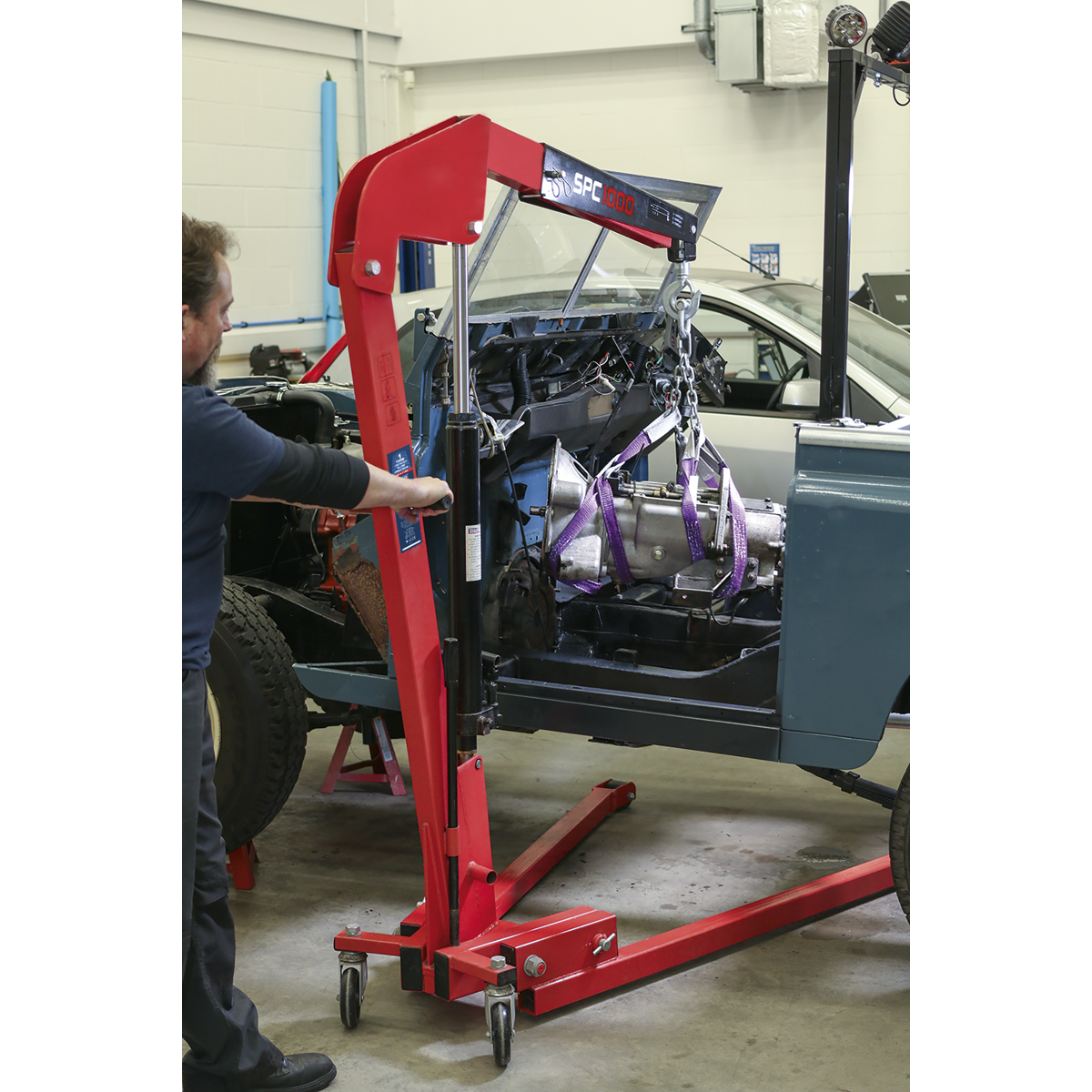 • 1 Tonne Folding crane with heavy-duty forged hook.