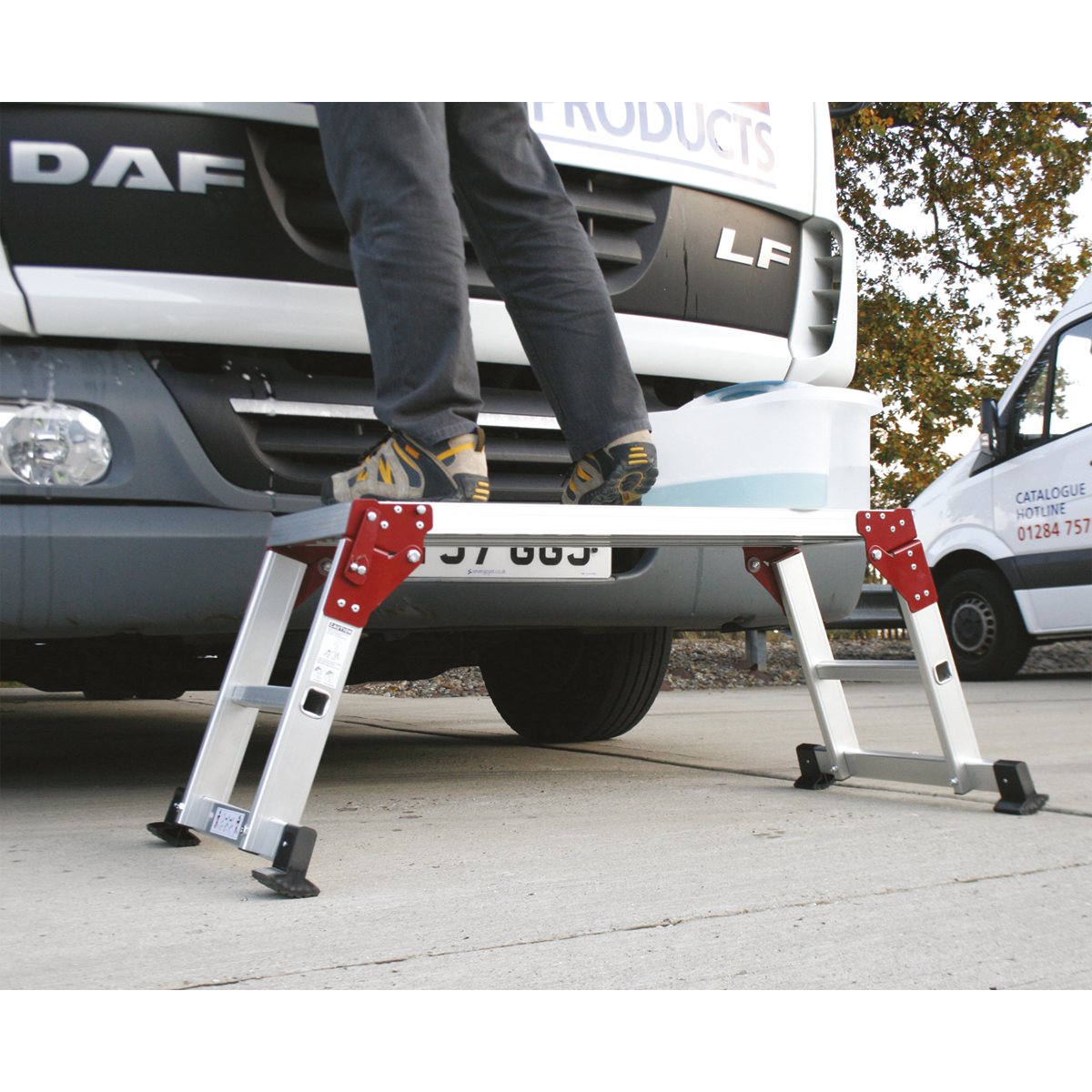 • EN 131-4 Approved folding and portable aluminium platform with 150kg capacity.