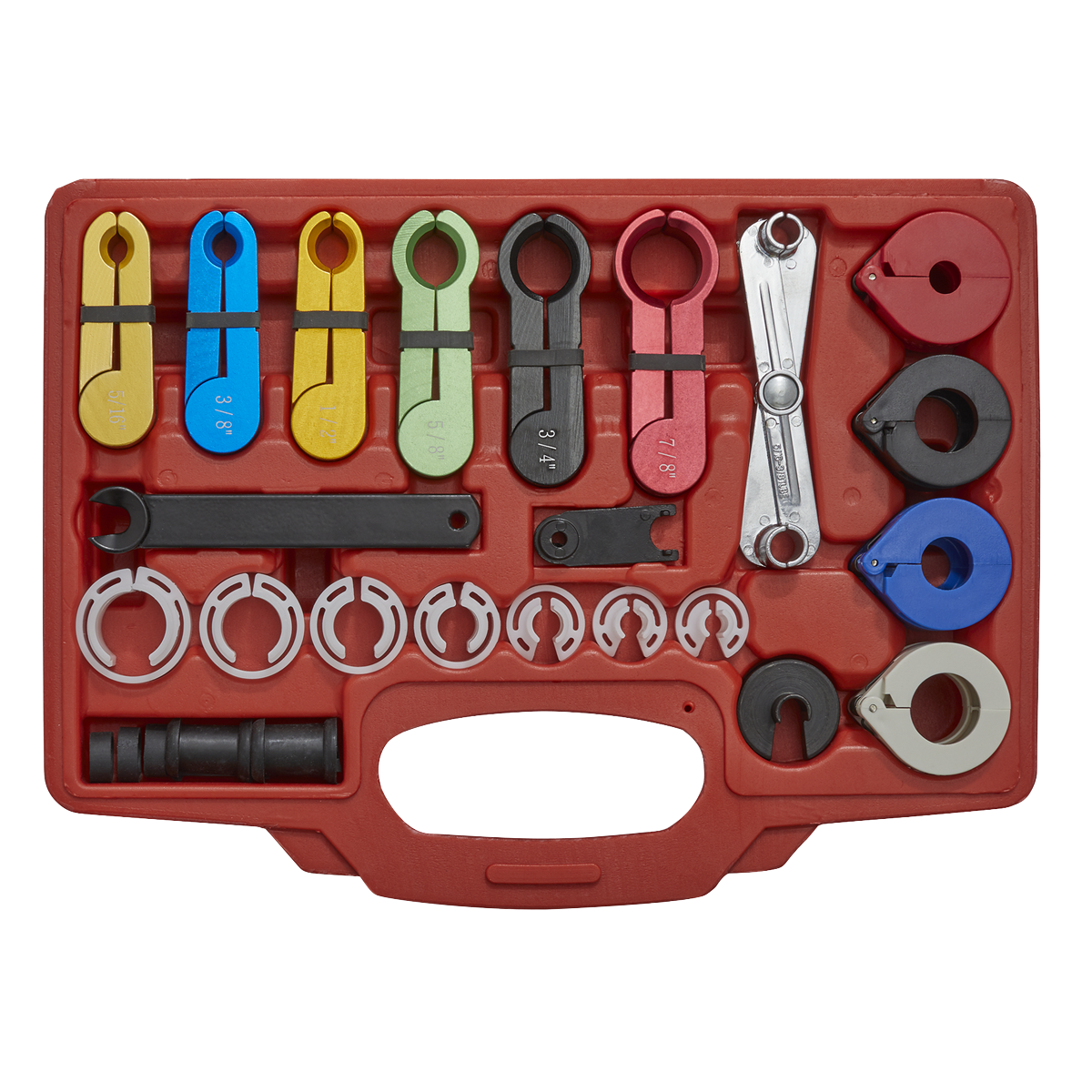 • Comprehensive kit for separating automotive air conditioning hoses and fuel lines.